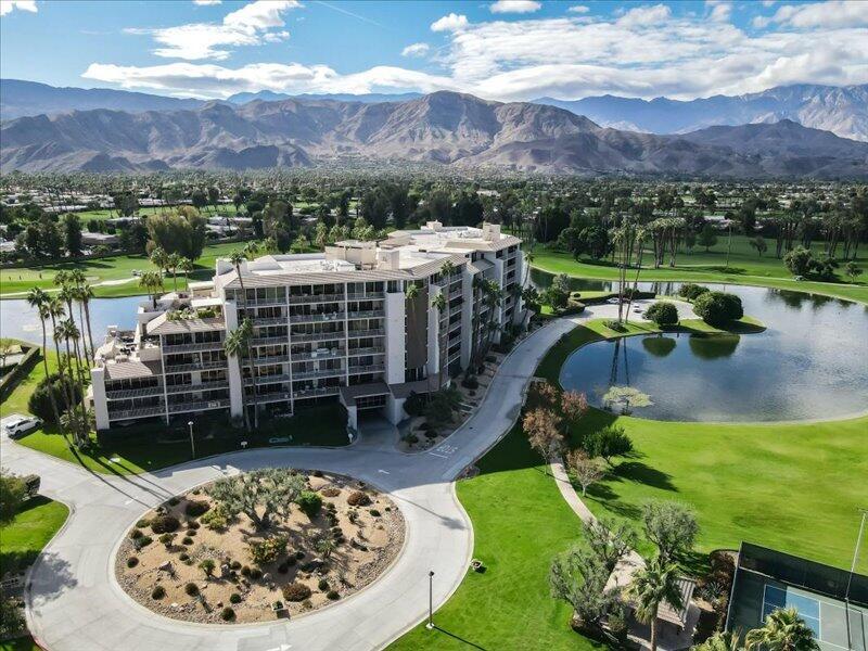 Terrific condo with breathtaking views of the mountains,green belt,golf course and lakes. The patio is your haven spot to enjoy the desert sunsets. The state of the art kitchen is equipped with lots of cabinets and is ideal for entertaining. Main bedroom is spaces with en-suite bathroom with tub. Second bedroom,as well very spaces. This gated community is conveniently located near the Eisenhower Hospital,3 minutes drive to all the shopping's. The CC offers tennis,Clubhouse with restaurant in winter,golf,gym,and the underground parking space with small storage. Energy efficient system shared with other homeowners.