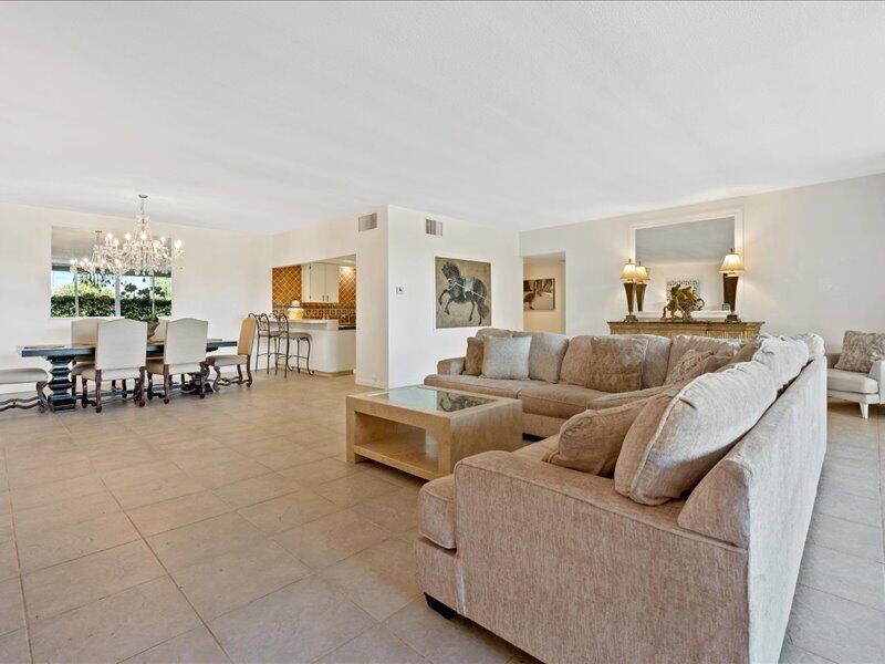 .Spacious corner unit with tile flooring throughout,featuring versatile open living and dining areas. The large terrace is ideal for entertaining or relaxing and offers privacy and views of beautifully lit trees at night. 9-foot floor-to-ceiling windows fill every room with natural light; the screened patio with sliding glass door provides easy outdoor access. Living room includes Spanish style tiled fireplace. The kitchen includes beautiful hand-painted Spanish tile backsplash,ceramic tile counters,and a breakfast bar. Both spacious bedrooms have ample closet space and direct access onto the terrace. HOA dues include cable TV with HBO/Showtime,Internet Wi-Fi service,air-conditioning,water,gas,trash,much more. This spacious condo promises a blend of privacy and comfort,making it the perfect retreat for those seeking a serene yet vibrant lifestyle Desert Island is a unique hi-rise condominium community nestled on a 25-acre island surrounded by a sparkling lake and 18-hole championship golf course. Centrally located to The River shopping,movies & restaurants.