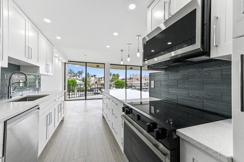Step into luxury with this fully renovated two-bedroom, two-bath condo, boasting a sleek, modern kitchen featuring quartz countertops, stainless steel appliances, and chic, custom-designed lighting. Both bathrooms exude contemporary elegance with tasteful upgrades. Unwind on the spacious covered balcony, sipping your coffee while enjoying partial Intracoastal views and watching yachts cruise by. Move-in ready, this stylish home blends comfort and sophistication in a prime location--perfect for year-round living or a lavish getaway. Bonus: a convenient storage unit on the seventh floor. Brand new gym and clubroom in the building.