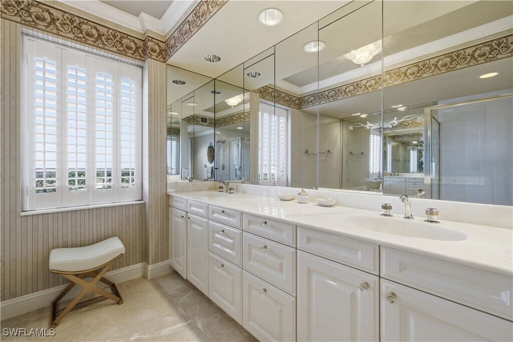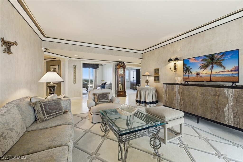 BOOKED for 2025 Season! Marquessa,an elegant building located within the gated community of Bay Colony. This 3 bedroom/3 bath,den residence overlooks the Pelican Bay preserve with long view. The Marquesa offers access to the tennis center,and private Beach Club at Bay Colony,offering fine and casual dining,as well as a beachside pool with lounge service and light fare. The living room is quite comfortable,offering two couches,two matching chairs,with easy access to the Lanai. The master suite has a king bed,flat screen TV,large walk-in closet,and private bath with a tub,separate shower and dual sinks. The Guest bedroom has queen-size beds,attached bath with shower,and private lanai. The 2nd guest suite has 2 twin beds,and private bath with a shower. The Den has a comfortable couch,TV,and small balcony. The kitchen has all white cabinetry,quartz counters and bar,and a round dining table and chairs. Enjoy the screened lanai with seating offering beautiful sunset views. Marquesa amenities include a heated pool/spa,BBQ,fitness and social rooms and a guest suite Access to all of the Bay Colony amenities - beach club,dining,tennis.