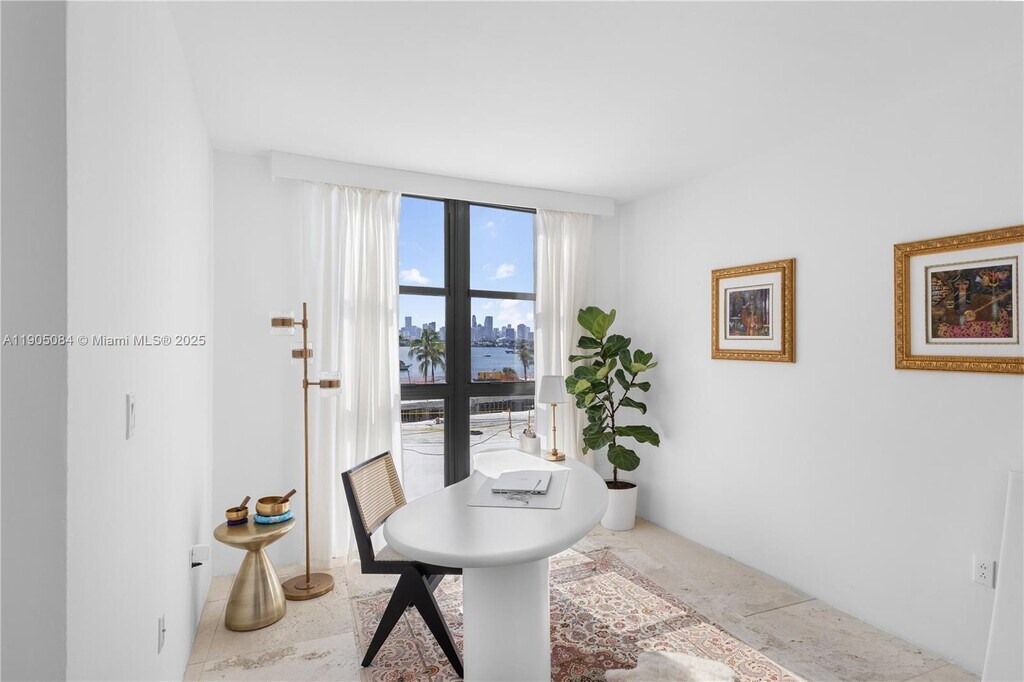 Beautiful 2 bedroom converted into a 1 bedroom with Den/office. 2 Full bathrooms. Designer renovated. Huge Balcony view of bay and pool. Full service luxury building with doorman, Valet, tennis and gym. Walk in closet, washer dryer in unit. Walking distance to Sunset Harbour neighborhood and Lincoln Road. Park across the way. Pool and deck in process of renovation.