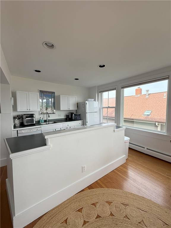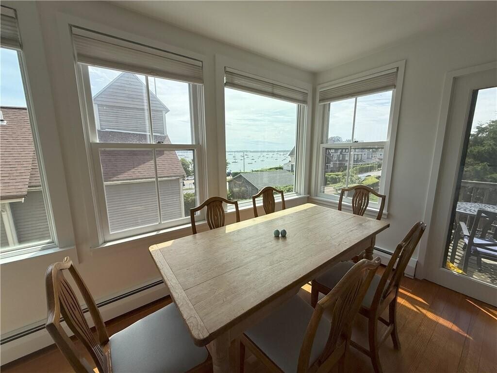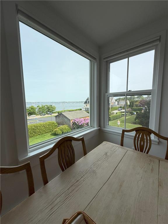 Winter,furnished rental available SEPT 2026-JUNE 2027. Welcome to this sun-filled,second-floor 3-bedroom,2-bathroom apartment offering nearly 1,500 sq ft of historic charm and modern comfort in the heart of downtown Jamestown. Walk able to all of Jamestown’s shopping and dining. Located just steps from the waterfront,this unique residence features stunning views of Narragansett Bay,Jamestown Harbor,and the Newport Bridge. Enjoy the character of original hardwood flooring throughout and a functional layout that blends timeless style with convenience. The open-concept kitchen and dining area flow seamlessly onto a back deck—perfect for entertaining or enjoying coastal breezes. The spacious primary ensuite features a vintage clawfoot tub,original tile,and an in-unit washer/dryer for added ease. The inviting living room includes a cozy window seat plenty of seating and it opens onto a private north-facing balcony—ideal for morning coffee,ocean views,or outdoor dining. A second bedroom with custom built-ins offers a flexible space for a home office,reading nook,or guest room,with direct access to the balcony as well. This one-of-a-kind rental is a rare opportunity to live in one of Jamestown’s most desirable locations,combining historic charm with unbeatable water views and access.