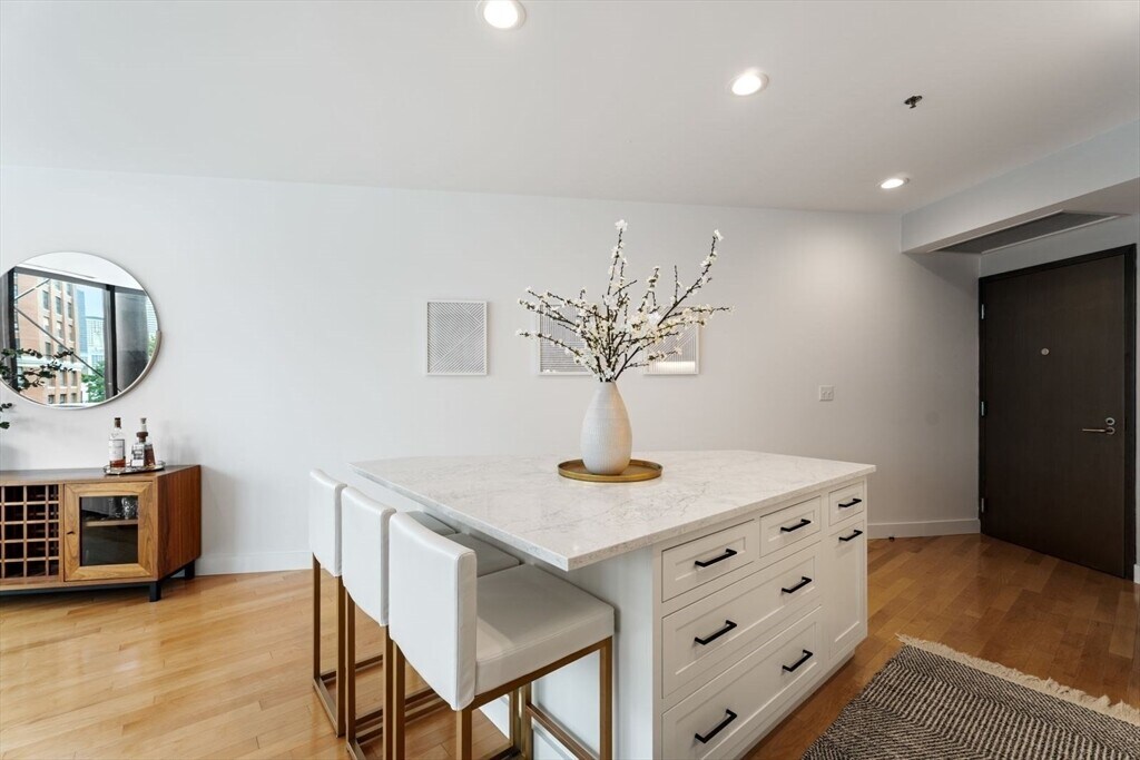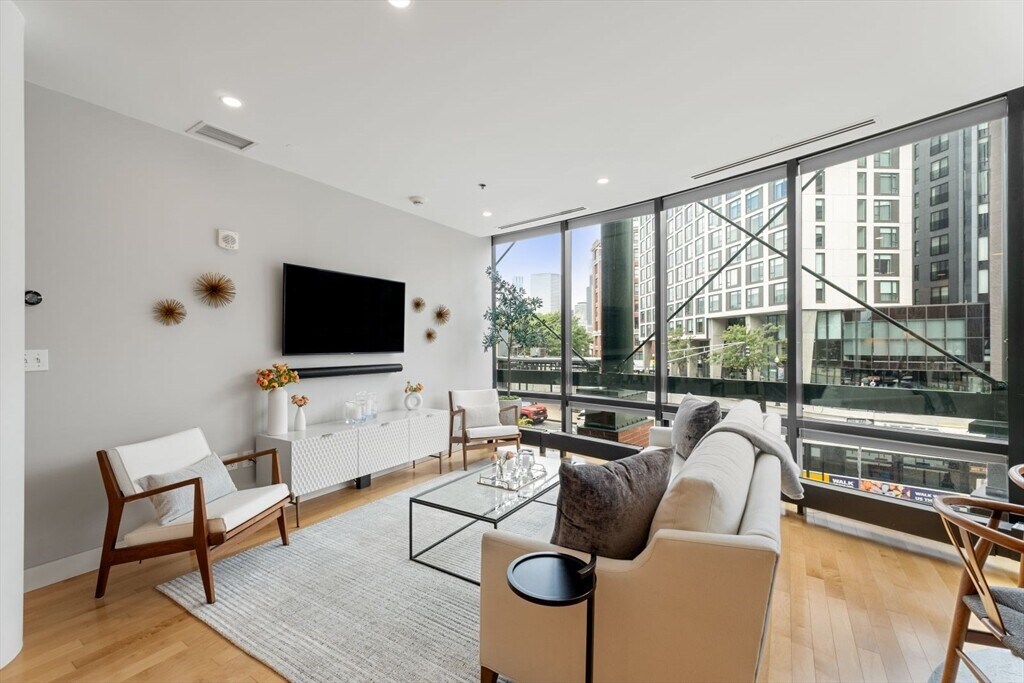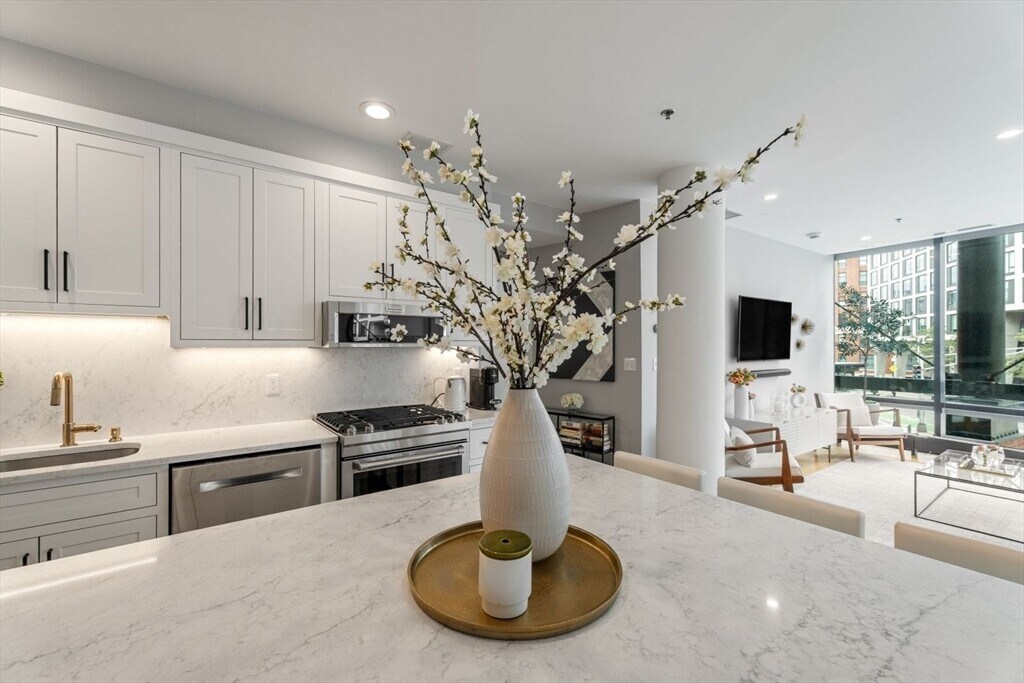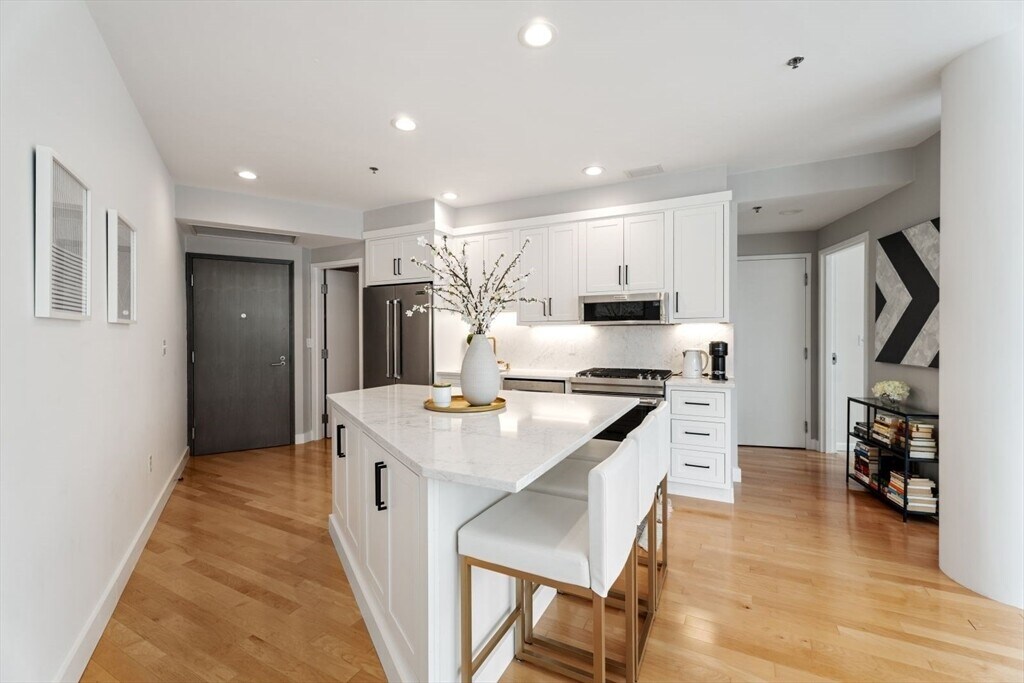 Indulge in the pinnacle of city living with this extraordinary loft-style one bedroom,where architectural drama meets refined comfort. A sweeping curved wall of floor-to-ceiling windows frames skyline views while bathing the interiors in brilliant natural light. Warm maple hardwoods lend understated elegance. The designer kitchen—recently rebuilt from the ground up—boasts an oversized island with abundant storage,quartz countertops,premium stainless-steel appliances,gas cooking,a JennAir refrigerator with ice and filtered water,and bespoke cabinetry. Ample closets (3),in-unit laundry,and deeded garage parking elevate convenience and comfort. Residents enjoy 24/7 concierge,a state-of-the-art fitness center,rooftop terrace with pool and grills,a stylish residents’ lounge,and secure bike storage. Steps from the Red Line,this home delivers a seamless fusion of high design,modern convenience,and urban sophistication. Available Oct 1. No pets please! MLS# 73433382