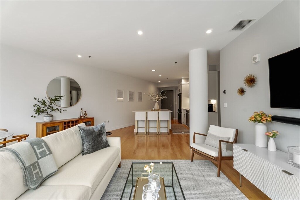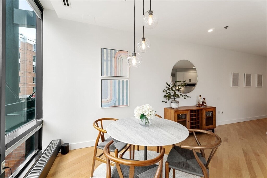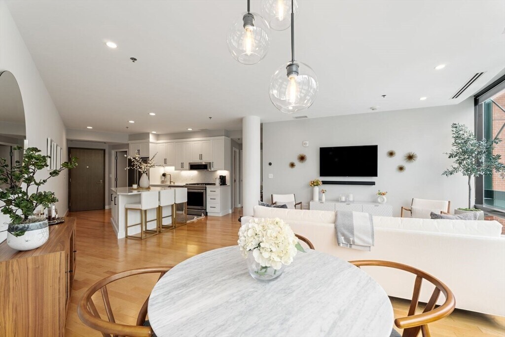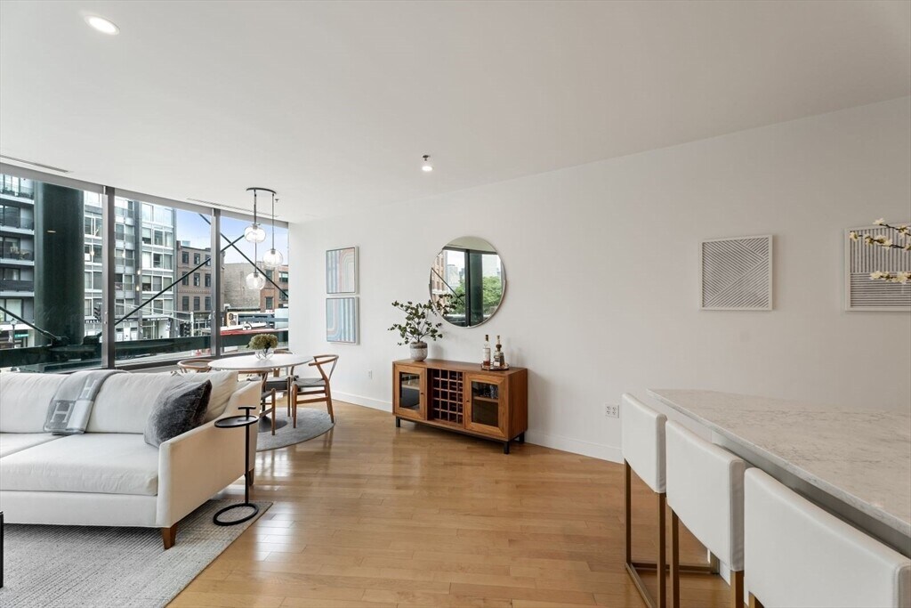 Experience style and sophistication in this stunning brick-and-beam home at the coveted Court Square Press. This classic industrial residence features an open-concept kitchen with sleek modern cabinetry,stone countertops,stainless steel appliances,and ample storage. Soaring ceilings and oversized windows fill the space with natural light,highlighting its distinctive character. The spacious living area allows for an office nook,dining table,and full seating setup. The bathroom offers hexagonal tile flooring,subway-tiled walls,granite vanity,and a soaking tub. Hardwood floors throughout and in-unit washer/dryer. Enjoy full-service living with 24/7 concierge,fitness center,rooftop pool and terrace with sweeping views of the city,grilling stations,media room,and on-site management. Prime location near the Seaport and across from the Broadway T. MLS# 73445035