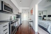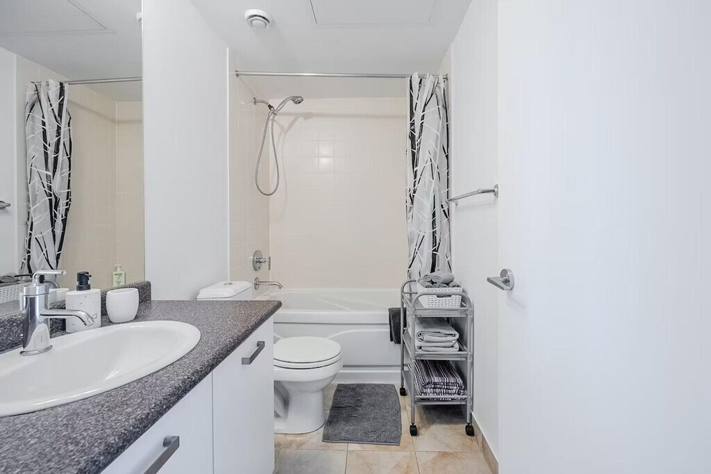 Inspired by the art and architecture of Burano, this comfortable 1-bedroom, 1-bathroom suite with a balcony offers an unobstructed downtown view. Feel at home in this condominium that seeks to replicate the feel of the island’s unique and colorful homes. The building features a stunning lobby replicating an art gallery with plush lounge seating. The apartment has a fully functional kitchen with tea, coffee, a kettle, coffeemaker, and toaster. A washer and dryer are available. The bathroom includes towels, shampoo, conditioner, body wash, a hair dryer, and other toiletries. Underground parking with in/out privileges is available upon request for an additional fee of $25 per night. It's recommended to request it in advance as spaces may be limited. In case of no availability, there is paid underground parking 100 meters from the building at 27 Grosvenor St. for $30 per 24 hours on weekdays and $16 on weekends. Pets are allowed with a fee of $10 per night for 1 pet. A travel crib (for babies 0-18 months) and bed rails are available for $5 per item per night; book in advance. The 48-story sculptured glass tower rises out of the historical Addison on Bay and soars above a 3-story podium. According to the condo rules, information about all guests must be provided to the condo management prior to arrival, including names, ID details, vehicle and license plate numbers (if parking is required). Guests must be 18 or over to check in. Guests whose names or ID do not match the information given are not allowed into the building. [SI]