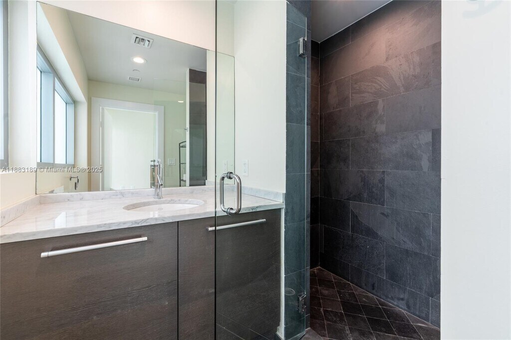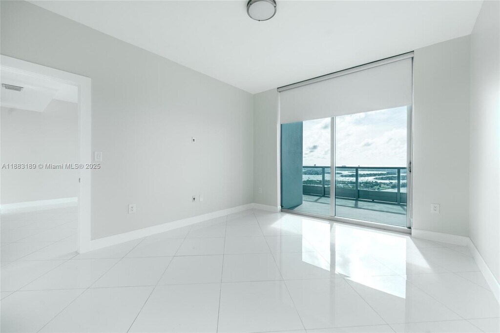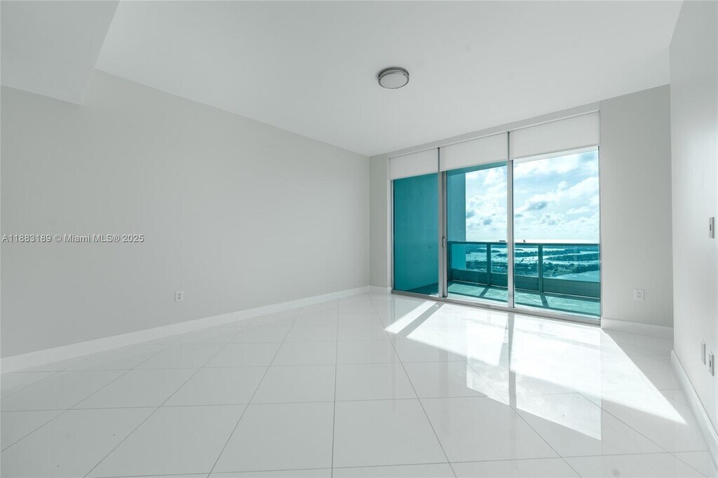 Incredible views from this spacious 1-bedroom, 2-full-bathrooms overlooking Biscayne Bay & South Beach. Expansive terrace. Floor to ceiling high impact glass windows & sliding glass door. Gourmet kitchen w/top of the line appliances. Roll-down shades and roll-down blackouts in bedroom. Lots of closet space. Porcelanato tiled floors throughout. All remodeled bathrooms. Light fixture installed. Great luxurious amenities including pools, exercise room, spa, sauna, movie theater and more. Centrally located close to major entertainment venues, major highways, South Beach, MIA and Port of Miami. (First+ two Security Deposit, Credit & Background check req. w/ offers. Proof of Renters Ins req as condition to lease)