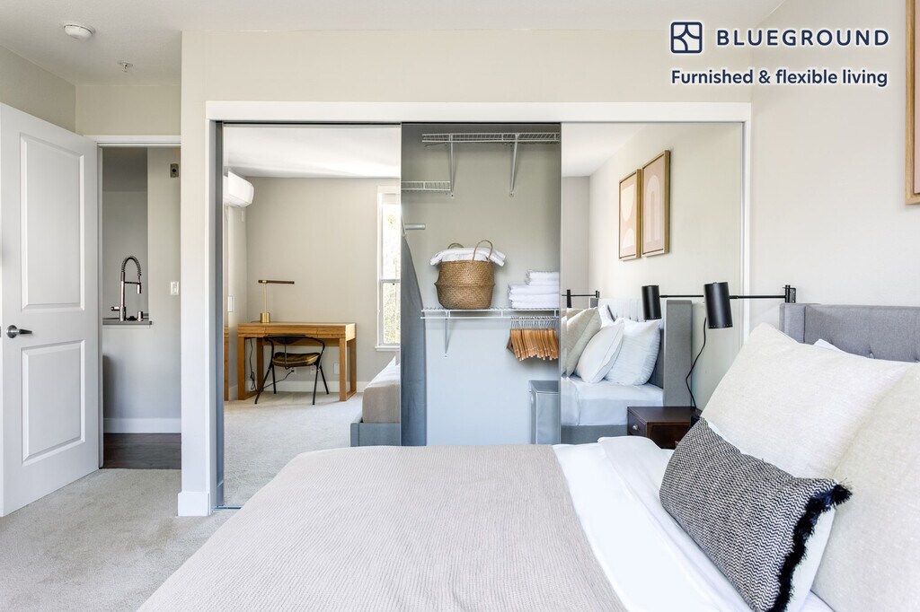 Discover the best of Mountain View, with this one bedroom apartment in Old Mountain View. It’ll be easy to simply show up and start living in this furnished apartment with its fully equipped kitchen, living room, and our dedicated, on-the-ground support. (ID #SFO379) The advertised rate of $5,240/month is the lowest available price, based on a 12 month(s) stay with a move-in date of March 2, 2026. Rates vary depending on the duration of stay, season, and other parameters. For exact pricing and additional pricing components, please visit our website and enter your desired move-in and move-out dates. The rate is applicable when billed upfront; it can be higher if billed in multiple payments. Brokers are welcome to reach out. Were you looking for an unfurnished lease? Try Blueground instead and upgrade from unfurnished to furnished living: - Furnished at rates comparable to unfurnished - No setup or furniture costs - save thousands - Move-in ready - save time, just bring your suitcase Designed with you in mind Thoughtfully designed with bespoke finishes, modern furnishings, and a fully equipped kitchen, you’ll enjoy that “I’m home” feeling with this Blueground apartment. Whether you’re lounging in your roomy living room streaming the latest and greatest entertainment on the smart TV or premium wireless speaker, or getting some well-earned rest on the superior quality mattress with luxury linens, you’ll fall in love with everything this Old Mountain View apartment has to offer. This apartment also offers in-apartment laundry. Sleeping arrangements King Bed, 70.8in/180cm Amenities Building amenities unique to this one bedroom apartment include an on-site: - BBQ Area - Dryer - Swimming pool - Washing machine - Lounge - Parking - Pets allowed Arrival and ongoing support The entire apartment is yours to enjoy! Throughout your stay, you’ll have access to our Client Experience team through the Blueground App. You can schedule additional cleanings, submit maintenance requests, and view our neighborhood recommendations with just a few taps. We’ll share all details upon confirmation of your stay. Other things to note Building amenities may have an extra cost. This Blueground apartment has flexible lease options, allowing you to book it for one month, a year, or more. Pets are welcome, though weight limits and breed restrictions apply and may incur fees. Parking is offered based on availability and is subject to a fee. Please keep in mind that this is a walk up building. We take great pride in ensuring every photo displayed is shot in our own units with our actual furnishings. That said, we regularly refresh our decor and furniture arrangement, which may differ from what’s pictured.