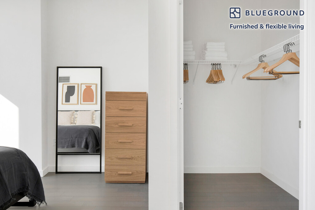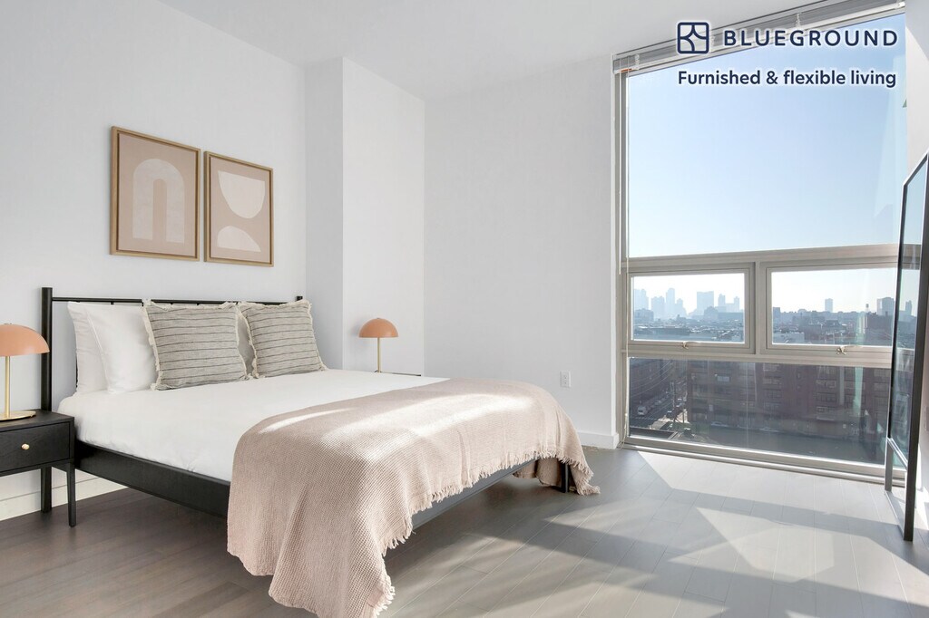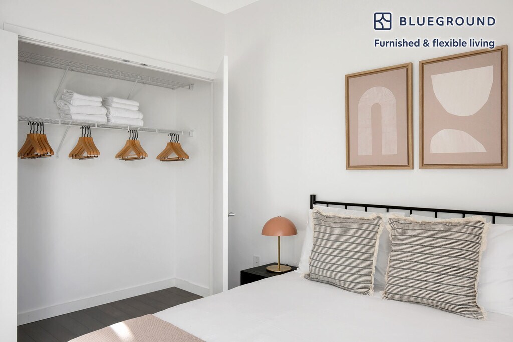 Show up and start living from day one in Hoboken with this sophisticated two bedroom Blueground apartment. You’ll love coming home to this thoughtfully furnished, beautifully designed, and fully equipped Hoboken home with stunning views over the city. (ID #NYC717) The advertised rate of $6,620/month is the lowest available price, based on a 12 month(s) stay with a move-in date of March 30, 2026. Rates vary depending on the duration of stay, season, and other parameters. For exact pricing and additional pricing components, please visit our website and enter your desired move-in and move-out dates. The rate is applicable when billed upfront; it can be higher if billed in multiple payments. Brokers are welcome to reach out. Were you looking for an unfurnished lease? Try Blueground instead and upgrade from unfurnished to furnished living: - Furnished at rates comparable to unfurnished - No setup or furniture costs - save thousands - Move-in ready - save time, just bring your suitcase Designed with you in mind Thoughtfully designed with bespoke finishes, modern furnishings, and a fully equipped kitchen, you’ll enjoy that “I’m home” feeling with this Blueground apartment. Whether you’re lounging in your stylish living room streaming the latest and greatest entertainment on the smart TV or premium wireless speaker, or getting some well-earned rest on the superior quality mattress with fully stocked linens, you’ll fall in love with everything this Hoboken apartment has to offer. This apartment also offers in-apartment laundry. Sleeping arrangements King Bed, 70.8in/180cm Queen Bed, 63in/160cm Amenities Building amenities unique to this two bedroom apartment include an on-site: - Dryer - Elevator - Swimming pool - Washing machine - Lounge - Pets allowed Arrival and ongoing support The entire apartment is yours to enjoy! Throughout your stay, you’ll have access to our Client Experience team through the Blueground App. You can schedule additional cleanings, submit maintenance requests, and view our neighborhood recommendations with just a few taps. We’ll share all details upon confirmation of your stay. Ideally Located This furnished apartment is located in Hoboken, a quirky historic waterfront community across the Hudson River from Manhattan. This sought-after city is the birthplace of both baseball and legendary crooner Frank Sinatra. Hoboken is an easy commute to New York City, but there's plenty to do right in town. A wide variety of bars, restaurants, and cafes reflects the city's diverse population. There are several notable museums in Hoboken as well as a Shakespeare festival each summer. There's also the lovely Hudson River Waterfront Walkway, which has a riverside promenade with jaw-dropping views of the Manhattan skyline. Hoboken is well-connected to Manhattan by ferries, light rail lines, buses and NJ Transit’s PATH train system, which runs 24/7 between several stops in Hoboken and 33rd Street and the World Trade Center in Manhattan. Other things to note Building amenities may have an extra cost. This Blueground apartment has flexible lease options, allowing you to book it for one month, a year, or more. Pets are welcome, though weight limits and breed restrictions apply and may incur fees. Brokes CYOF. We take great pride in ensuring every photo displayed is shot in our own units with our actual furnishings. That said, we regularly refresh our decor and furniture arrangement, which may differ from what’s pictured. [SI]