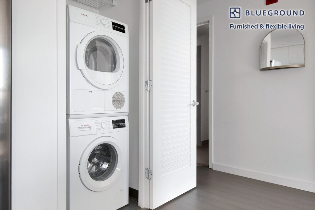 Show up and start living from day one in Hoboken with this sophisticated two bedroom Blueground apartment. You’ll love coming home to this thoughtfully furnished, beautifully designed, and fully equipped Hoboken home. (ID #NYC813) The advertised rate of $6,210/month is the lowest available price, based on a 12 month(s) stay with a move-in date of March 7, 2026. Rates vary depending on the duration of stay, season, and other parameters. For exact pricing and additional pricing components, please visit our website and enter your desired move-in and move-out dates. The rate is applicable when billed upfront; it can be higher if billed in multiple payments. Brokers are welcome to reach out. Were you looking for an unfurnished lease? Try Blueground instead and upgrade from unfurnished to furnished living: - Furnished at rates comparable to unfurnished - No setup or furniture costs - save thousands - Move-in ready - save time, just bring your suitcase Designed with you in mind As with any Blueground apartment, you’ll find a thoughtfully designed space complete with beautiful furniture and a fully equipped kitchen in this two bedroom property. And, thanks to our superior quality mattresses, fully stocked linens, and towels, you can relax knowing you’ll always feel comfortably at home. When you’re ready for some fun, you can take in the Hoboken vibes or bring the entertainment to you with the premium wireless speaker or smart TV. This apartment also offers in-apartment laundry. Sleeping arrangements King Bed, 70.8in/180cm Queen Bed, 63in/160cm Amenities Building amenities unique to this two bedroom apartment include an on-site: - Dryer - Elevator - Swimming pool - Washing machine - Lounge - Pets allowed Arrival and ongoing support The entire apartment is yours to enjoy! Throughout your stay, you’ll have access to our Client Experience team through the Blueground App. You can schedule additional cleanings, submit maintenance requests, and view our neighborhood recommendations with just a few taps. We’ll share all details upon confirmation of your stay. Ideally Located This furnished apartment is located in Hoboken, a quirky historic waterfront community across the Hudson River from Manhattan. This sought-after city is the birthplace of both baseball and legendary crooner Frank Sinatra. Hoboken is an easy commute to New York City, but there's plenty to do right in town. A wide variety of bars, restaurants, and cafes reflects the city's diverse population. There are several notable museums in Hoboken as well as a Shakespeare festival each summer. There's also the lovely Hudson River Waterfront Walkway, which has a riverside promenade with jaw-dropping views of the Manhattan skyline. Hoboken is well-connected to Manhattan by ferries, light rail lines, buses and NJ Transit’s PATH train system, which runs 24/7 between several stops in Hoboken and 33rd Street and the World Trade Center in Manhattan. Other things to note Building amenities may have an extra cost. This Blueground apartment has flexible lease options, allowing you to book it for one month, a year, or more. Pets are welcome, though weight limits and breed restrictions apply and may incur fees. Brokes CYOF. We take great pride in ensuring every photo displayed is shot in our own units with our actual furnishings. That said, we regularly refresh our decor and furniture arrangement, which may differ from what’s pictured. [SI]