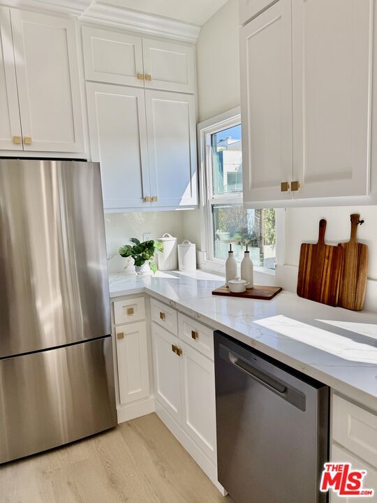 Magnificently remodeled with taste and elegance. This gorgeous unit with a private entry, offers 1,359 square feet of sprawling open floor plan with a large sun-field living room and a large sun-field dining room open to the gourmet kitchen with custom cabinets, custom quartz countertops and top of the line appliances. Large bedrooms with walk-in closets. Recessed lighting, hardwood floors, central AC unit, in-unit laundry and much more. Located in one of the most sought after locations of west Hollywood, This unit is designed for luxury, comfort, and entertaining. MLS# 26670859