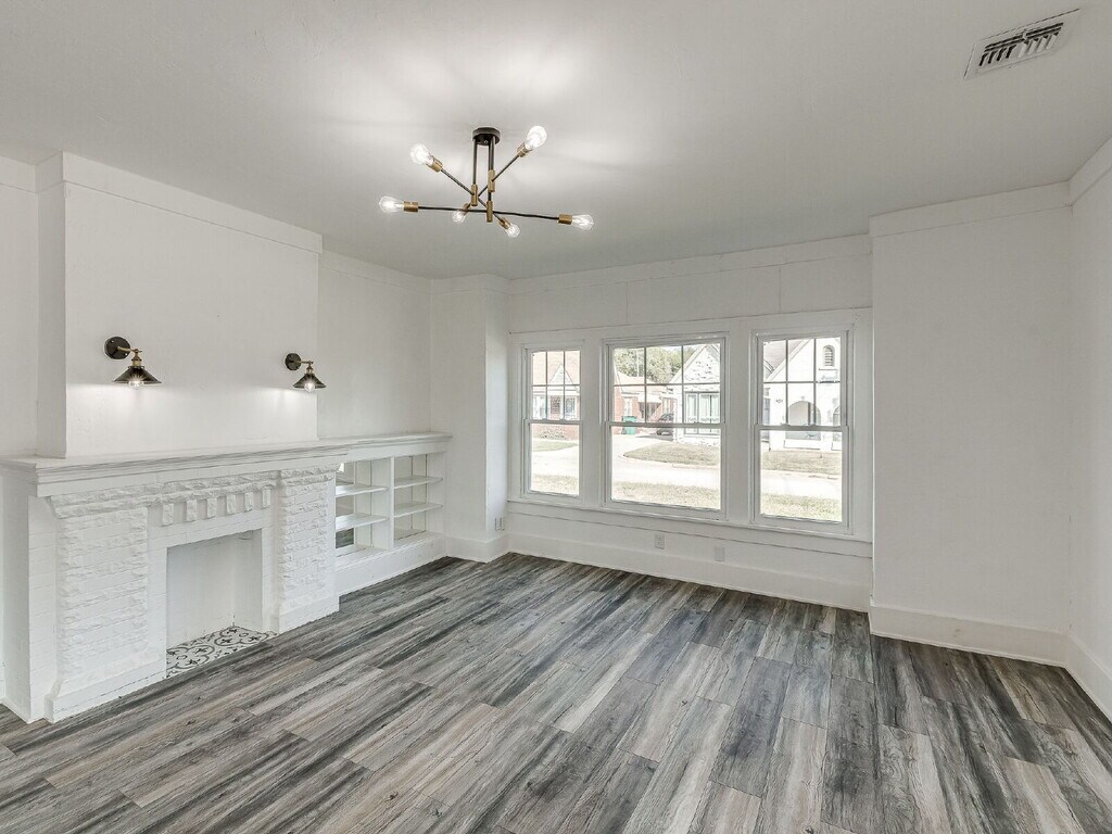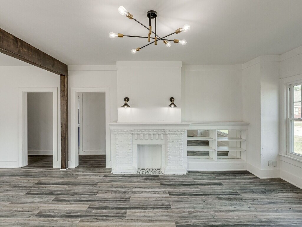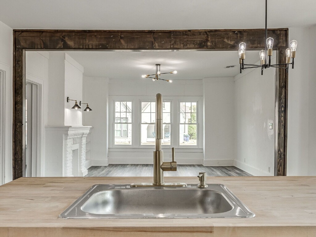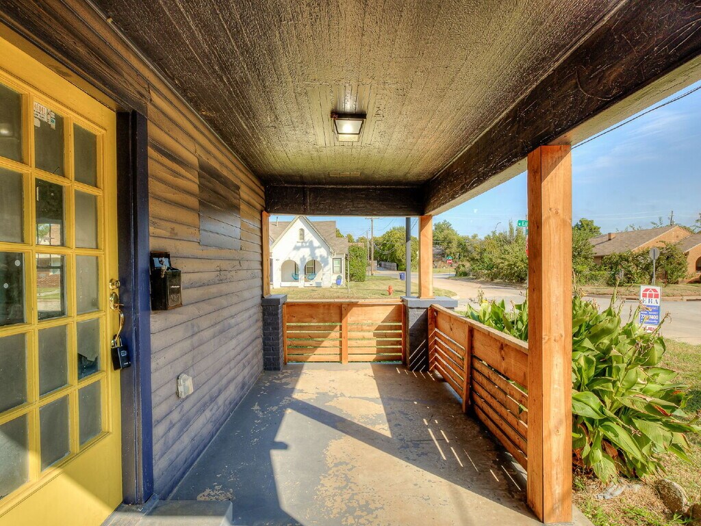 Charming and completely renovated 1930s bungalow in the heart of Oklahoma City! This 2-bed, 2-bath home beautifully blends classic character with modern updates, offering 1,405 sq. ft. of bright, open living space. Step inside to find fresh interiors with luxury vinyl plank flooring, high ceilings with exposed beams, and abundant natural light throughout. The show-stopping kitchen features rich blue cabinetry, a butcher block island, subway tile backsplash, and stainless-steel appliances — perfect for entertaining or casual everyday living. Both bedrooms are spacious with updated bathrooms nearby, while the primary suite includes a private en-suite bath. Outside, enjoy the inviting covered front porch and. A detached secondary structure with a bathroom (no HVAC) offers flexible space for storage, hobbies, or a workshop. Conveniently located near downtown OKC, Paseo, and major highways — this stylish home delivers the perfect combination of vintage charm and modern comfort.