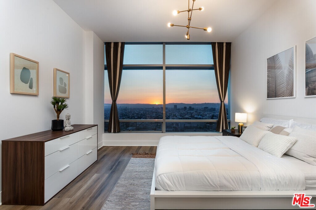FURNISHED, WHITE GLOVE MODERN LUXURY CONDO AT THE RITZ CARLTON, You can live in the tallest and one of the most prestigious residential skyscrapers in Los Angeles. Come Be swept away on the 32nd floor of this Stylish and Chic 5 Star Condo at the very sought after Ritz-Carlton Residences LA. The epitome of luxury and success, this high end home is supreme. Recently remodeled, it is furnished updated most exquisitely. Light and Bright, highlights are the absolutely incredible views to the glimmering Pacific Ocean, stunning Mountain Range, famous Hollywood Hills, the Griffith Observatory and Hollywood Sign. This is the prime and favored view location of the building facing west. Daytime is absolutely gorgeous and the sunsets and twinkling lights at night are so superb. On the interior, your favorite features will be the custom wood beams, floor to ceiling windows, stylish gray kitchen cabinets, wide plank flooring, high ceilings and the gold and black finishes throughout. An upgrade is an added walk in closet in the bedroom as the plan originally only has 1 closet. This gorgeous building was designed by Gensler and built by AEG and is literally a dream residence for so many. Experience white glove services like a doorman, 24 hour security, housemen, valet, concierge, saltwater pool and bar and on-site Ritz Spa. This lifestyle is outstanding and delightful. Also walk to concerts, sport events, award shows and restaurants all within a short distance. A truly fantastic and exciting living experience. Treat yourself. Includes 1 valet parking. No Smoking or vaping, Excellent application package is required including but not limited to great credit and references. Requires Renters Insurance and tenant pays internet and electric. Bed is a queen size. Will consider short term. MLS# 25621115