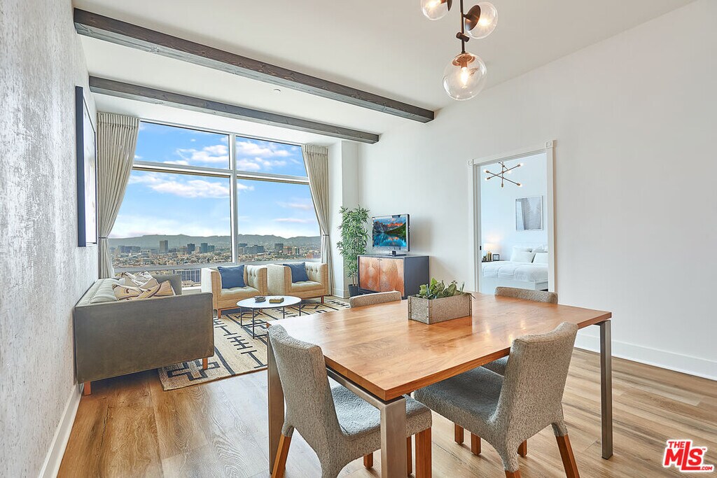 Unfurnished 1 Bedroom + Den for lease at The Ritz-Carlton Residences Los Angeles. This East Facing Sleek Condo has Posh European Appliances and views of DTLA, LA Live & Crypto. It's one of the most spacious of all the 1 bed plans with a den, larger living and dining area, and the 2nd bathroom has a shower, which no other 1 bed plan has this in the building. This 5-Star High Rise Provides Amazing Amenities Including Rooftop pool, Renowned spa, Sendero Restaurant and Bar, Valet, Security, Concierge, Media Room, 2 Fitness Centers, Sky Lounge and Much More. Residents have access to the on site Ritz Carlton Spa, Room Service and Housekeeping. Min 1 year lease required. $500 move in/out fee. Unfurnished. Includes 1 valet parking and 1 storage unit. Available for move in around February 1 2026. Make your appointment today. Square footage may be estimated.No smoking or vaping is permitted. Photos with furniture are virtual staging including the chandeliers. MLS# 25626505