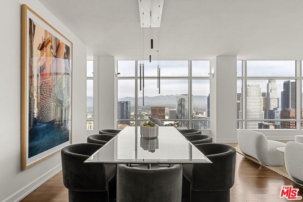 Experience refined luxury living at the iconic Ritz-Carlton Residences at LA Live. This 31st-floor 1 bedroom + office nook, 1.5 bath residence offers 1,280 sq ft of bright, open living space framed by floor-to-ceiling windows and spectacular east-facing views of the Downtown skyline, LA Live, and the surrounding city lights. The generous living and dining areas flow seamlessly into a sleek modern kitchen featuring Italian cabinetry, Gaggenau appliances, and ample counter space. The spacious primary suite includes a large walk-in closet and a spa-like bathroom with dual sinks, a soaking tub, and a separate shower. A dedicated office nook and an additional powder room make the layout ideal for working from home or hosting guests. Additional features include high ceilings, in-unit laundry, and refined finishes throughout. Residents enjoy exclusive access to a world-class collection of 5-star amenities: a rooftop saltwater pool with cabanas, fitness center, 24-hour valet parking, concierge and security services, a screening room, billiards lounge, conference and dining rooms, and access to hotel offerings such as room service and housekeeping. Daily complimentary continental breakfast is also provided for residents. Ideally situated in the heart of LA Live, you're moments from award-winning restaurants, entertainment venues, theaters, the arena, and upscale hotels. This is a rare opportunity to own a luxury residence at an exceptional value within one of Downtown LA's most prestigious full-service buildings. MLS# 26645401