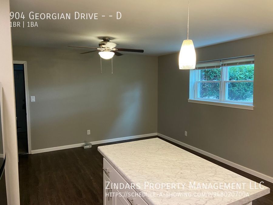 We have a newly remodeled one bedroom apartment at 904 Georgian Drive apartment D Danville, IL. Updated kitchen cabinets and countertops, bathroom, stainless steel appliances including, fridge, stove, microwave, and dishwasher. Extra cabinets and countertop space along with an open floor plan to the living room. Luxury vinyl plank flooring, forced air heat and central AC. All new windows and doors. There is a coin laundry machine on the 1st floor. Monthly rent is $700 per month. Security deposit $800. Rent includes garbage, landscaping and snow plowing. Tenant pays $75 per month for water and sewer. Tenant pays gas and electric. Apartments include new bathtub and surround, new toilet, and vanities, new light fixtures, can lights, new appliances, new floor coverings, and new nickel hardware. There is a his and her closet. Please visit our website at to schedule a showing or call to get info sent to your phone. Rental application, credit and background check required. Property is getting overhauled. Ask us about all the upgrades! This property is managed by Zindars Property Management LLC. Lawncare Pest Control Snow Plowing