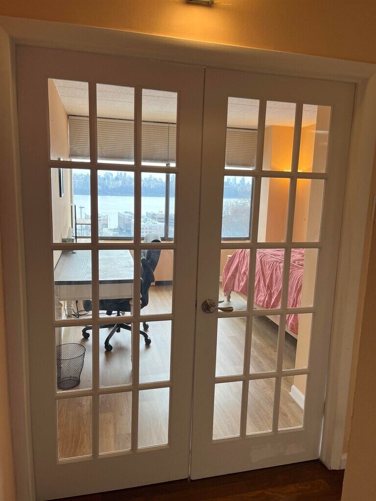 DIANA TRONTDirect NEW YORK views ALL rooms. Lobby level, no elevator needed to the unit (concierge is 3rd level) LR wall unit is a perfect addition for storage, includes a large TV, mood enhanced fireplace, all while you enjoy the ever changing NY skyline thru a wall of windows.Kitchen features are glass tiled backsplash which contrasts with the light colored cabinets, all stainless appliances, charcoal colored heated tiled floors, Master bedroom offers a tiled shower, over the sink dual-sided mirrored cabinet, large walk-in closet with barn door closure, French doors to 2nd bedroom or home office w/desk, Hall bath w/heated floor, jacuzzi. Ceiling to floor closets, ALL Utilities included, heat, hot water, electric, cooking gas,use of pool, 24 hour concierge for security & packages. 1 covered parking space included in rent.