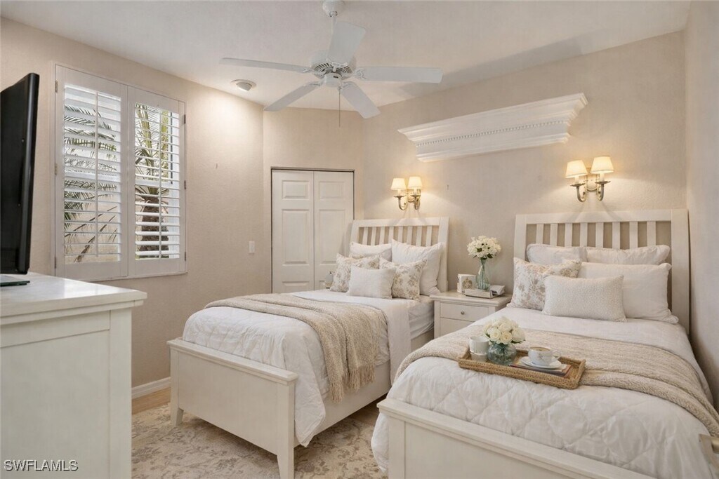 Exceptional First-Floor Turnkey/Furnished Annual Rental with Attached Garage, Storage & Lake View in Spanish Wells Golf and Country Club Welcome to this exceptional first-floor condo offering 1,364 sq. ft. of living space in the highly desirable Spanish Wells Golf and Country Club. This split 2-bedroom, 2-bath residence is being offered turnkey furnished, making it move-in ready for you to immediately enjoy as your new home. From the moment you enter, you’ll appreciate the warm and inviting layout. The open dining options include a glass-top dining table conveniently located just off the kitchen, bar seating at the counter, and a lovely outdoor dining area on the screened lanai—perfect for enjoying Florida’s beautiful weather. The west-facing lanai offers serene lake and golf course views, breathtaking sunsets, and is equipped with hurricane shutters for peace of mind. Additional features include a washer and dryer inside the unit, an attached garage with private storage, plus an assigned parking space and ample guest parking. The condo is located close to the community pool, in a very quiet and peaceful setting—an ideal place to relax and unwind. Spanish Wells offers a prime location near shopping, dining, and entertainment, with Barefoot Beach’s white sandy shores less than 5 minutes away. Listed by: Premiere Plus Realty Company Listing posted by Linda Castanon [SYNDID 4135966 12262025]