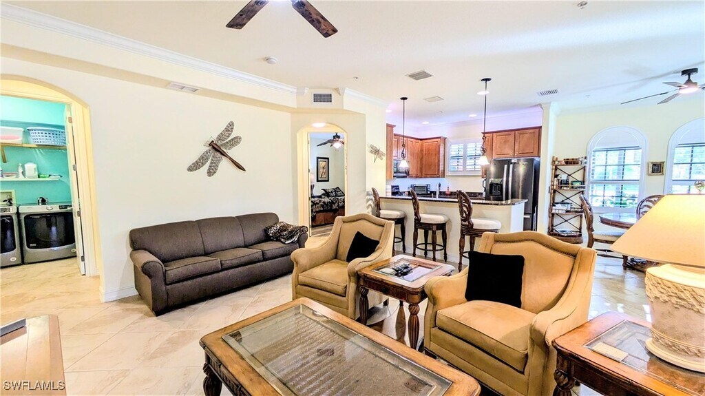 Welcome to a beautiful townhouse in the heart of Olé at Lely Resort,one of Naples' most desirable communities. This charming 2-bedroom,2.5-bath home offers 1,441 square feet of comfortable living space,perfect for anyone looking to enjoy the Southwest Florida lifestyle. Step inside and feel right at home with the open and airy floor plan. The spacious living and dining areas flow seamlessly,creating an inviting space for relaxing or entertaining. The kitchen is well-equipped with modern appliances,plenty of storage,and a convenient pantry. Upstairs,the master suite is a peaceful retreat,complete with dual sinks and a combination tub and shower. With nice furnishings,this home is ready for you to move in and start living the Naples dream. One of the biggest highlights of this property is its location within Olé at Lely Resort,a vibrant community designed for fun and relaxation. The Village Center is the heart of it all,featuring a stunning resort-style pool with waterfalls,a fully equipped fitness center,a private movie theater,and even an on-site pub and bistro. Whether you're in the mood for a workout,a swim,or just a casual meal with friends,everything you need is right at your fingertips. Love staying active? This community has it all—tennis courts,pickleball,basketball,bocce,and scenic walking paths. Families will love the kiddie pool,while social butterflies can take advantage of the many events and gatherings happening year-round. Located in Naples,you're just a short drive from world-class beaches,upscale shopping,and top-rated restaurants. If you’re a golf enthusiast,you’ll appreciate having three championship golf courses right in Lely Resort: the Mustang and Flamingo Island courses (open to the public) and the private Classics course. Whether you're looking for a full-time rental or a seasonal getaway,this townhouse offers the perfect blend of comfort,convenience,and resort-style living. Don't miss your chance to rent a piece of paradise in one of Naples' most sought-after communities!