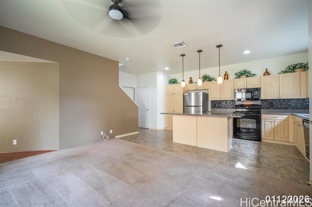 3-bedroom, 2.5-bath house with 2-car garage and driveway parking in Ewa Gentry Tides Subdivision. Central AC, 12 PV solar panels and enclosed private yard. Open floor layout with spacious living & kitchen area. Master bedroom with spacious walk-in closet and bathroom. Across the street walking distance from Safeway, Walgreens, Petco, Ross, restaurants, schools, and parks. Less than 10 mins away from Kamakana Ali’i Mall. Landscaping included. KEY FEATURES: Property Type: Single Family Home Bedrooms: 3 Bathrooms: 2.5 1,287sq ft (Interior) 3,490 sq ft (Land) Parking: Garage/Driveway Guest Parking: Yes HOME FEATURES: **12 PV SOLAR PANELS** Oven/Stove Refrigerator Microwave Hood Dishwasher Washer and Dryer Ceiling Fans Central AC Flooring Type: Tile and Carpet UTILITIES INCLUDED Landscaping LEASE TERMS: Non Smoking No pets Minimum Lease: 1 Year Security Deposit and First Month’s Rent Required Prior to Occupancy