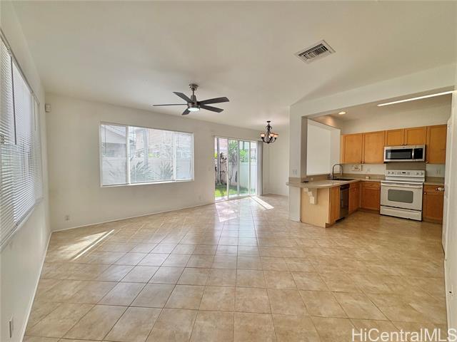 Available for Rent – December 22. Located in the desirable Ewa by Gentry – Montecito/Tuscany community, this vacant and move-in-ready home features an open 4-bedroom layout with an upstairs nook ideal for a home office, 2.5 bathrooms, central A/C, ceramic tile flooring downstairs, a spacious kitchen with pantry, separate laundry room with washer/dryer, and a convenient downstairs half bath. Enjoy a fully enclosed, landscaped backyard with irrigation and an outdoor lanai perfect for entertaining. The home includes a 2-car enclosed garage, driveway parking for two additional vehicles, and ample guest parking throughout the community. Community amenities include a swimming pool and clubhouse for events, and the home is conveniently located near public transportation, parks, and shopping. Monthly rent includes water, sewer, and trash; tenant responsible for electricity and internet.