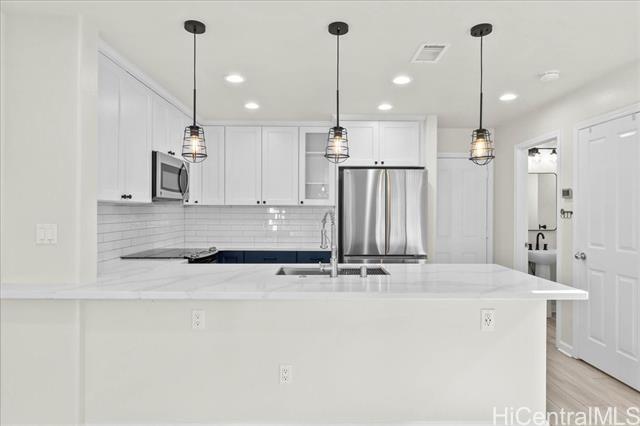 This tastefully remodeled townhouse in Ocean Pointe is a can't miss opportunity! New flooring, quartz countertops, stainless steel appliances and central AC are just some of the benefits of this unit. The community is beautiful as well, with a pool and jacuzzi area with BBQ for your use. The primary bedroom is spacious, with a walk in closet for extra functionality. The 2 car garage keeps your cars secure, and ample guest parking throughout the community brings even further benefits to living here. Close proximity to the beach, Ka Makana Alii mall, military bases, shopping centers, eateries, and grocery stores. Call/text Brian Karamoto at to set up your showing today!