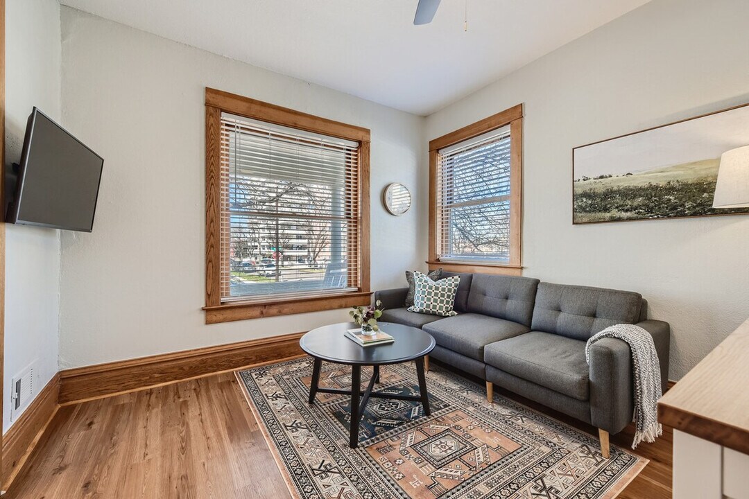 The advertised rate of $3,217/month is the lowest available price, based on a 30 day(s) stay with a move-in date of March 25, 2027. Rates vary depending on the duration of stay, season, and other parameters. For exact pricing and additional pricing components, please visit our website and enter your desired move-in and move-out dates. The rate is applicable when billed upfront; it can be higher if billed in multiple payments. Feel at home in this large, main floor 1-bedroom apartment, Unit #2 at 540 E 1st Ave, offering 791 sqft of living space with private entry from the front porch and backyard. This newly renovated apartment, furnished by a designer in March 2023, features a comfy queen bed and linens, and a stocked, open-concept kitchen with a floating island. Enjoy access to a communal backyard with a grill and outdoor dining table. Amenities include all utilities, parking, fast internet with 300mgps download and 10mgps upload, and a smart TV for your own streaming services. Free communal laundry is available in the basement. Located two blocks from Cherry Creek Trail, you can bike or walk north to Downtown and east to Cherry Creek Shopping District. Walk to three incredible restaurant areas: two blocks east to Pennsylvania & Bayaud, four blocks east to Alameda, five blocks north to 6th Ave & Cap Hill, and six blocks west to Broadway. It's also seven blocks to Wash Park, near the Rosebud Cafe, and a short drive to Trader Joe's. Downtown Denver, RiNo, and LoHi are just 10 minutes away, Red Rocks is 25 minutes away, and ski resorts are 1 hour and 30 minutes away. Nearby hospitals include St Joseph, Presbyterian St Luke’s, and Rose (13-15 minutes), Denver Health (5 minutes), and UC Health University of CO and Children’s Hospital CO (25 minutes). The host controls central heat from a single thermostat for this unit and the basement unit. Guests control window AC units and ceiling and tower fans. This apartment is dog friendly, but has a strict no cats policy. Pet rent is $90 per dog per month. Failure to check out on time will incur a $50 fee for every additional 30 minutes. A warning will be given for any reported noise disturbances, and additional disturbances will result in eviction from the property with no refund. Violation of the no smoking/vaping policy will result in damages fees. Use the dining room or the bedroom desk as a work-from-home office. [SI]