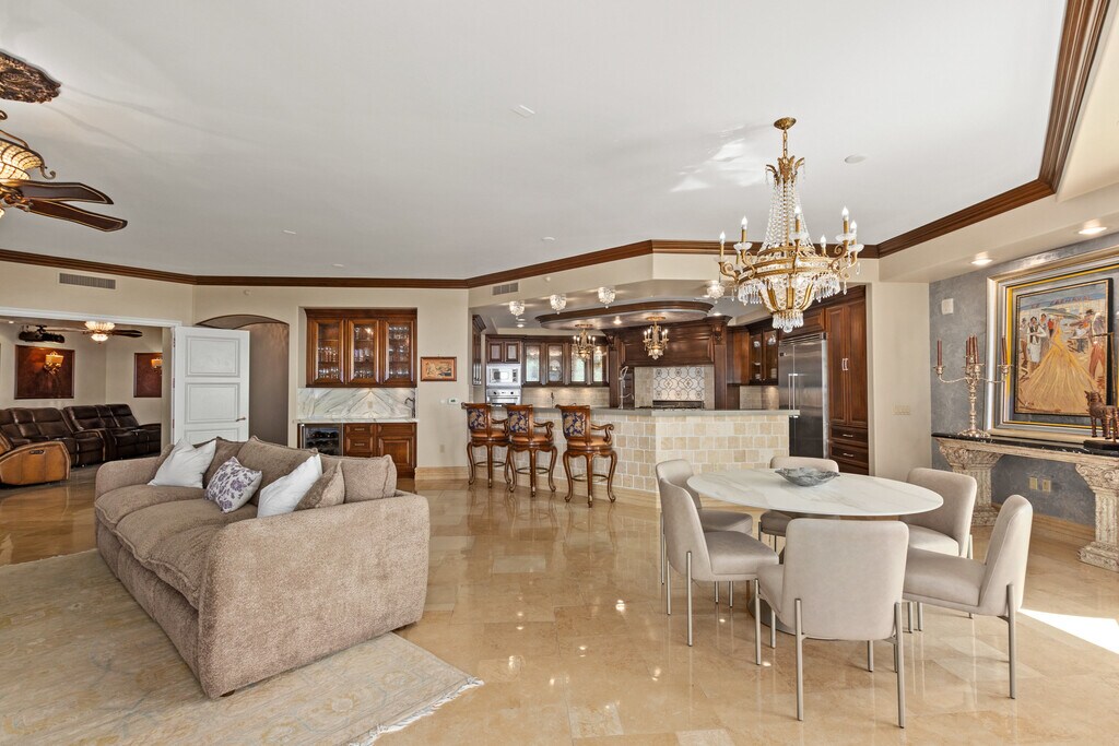 Experience refined luxury in this 3,355 sqft 3-bed residence located on the 5th floor. Recently updated & refreshed, this home showcases treated cabinetry, designer light fixtures & elegant wall treatments that exude sophistication. The open floorplan is perfect for entertaining, seamlessly blending style & functionality. A gourmet chef’s kitchen serves as the centerpiece, feat high-end appliances & oversized island, ideal for culinary creations & hosting guests. Panoramic city views from both balconies elevate the living experience, offering stunning backdrops day & night. The primary retreat is a sanctuary, with breathtaking mountain views & a renovated spa-like bath, complete with a luxurious soaking tub & walk-in steam shower. Two generous guest suites, provide comfort & privacy for family & visitors. Custom-built closets & hard surface flooring add to the impeccable design of this exceptional residence. This home delivers a lifestyle of sophistication & elegance.