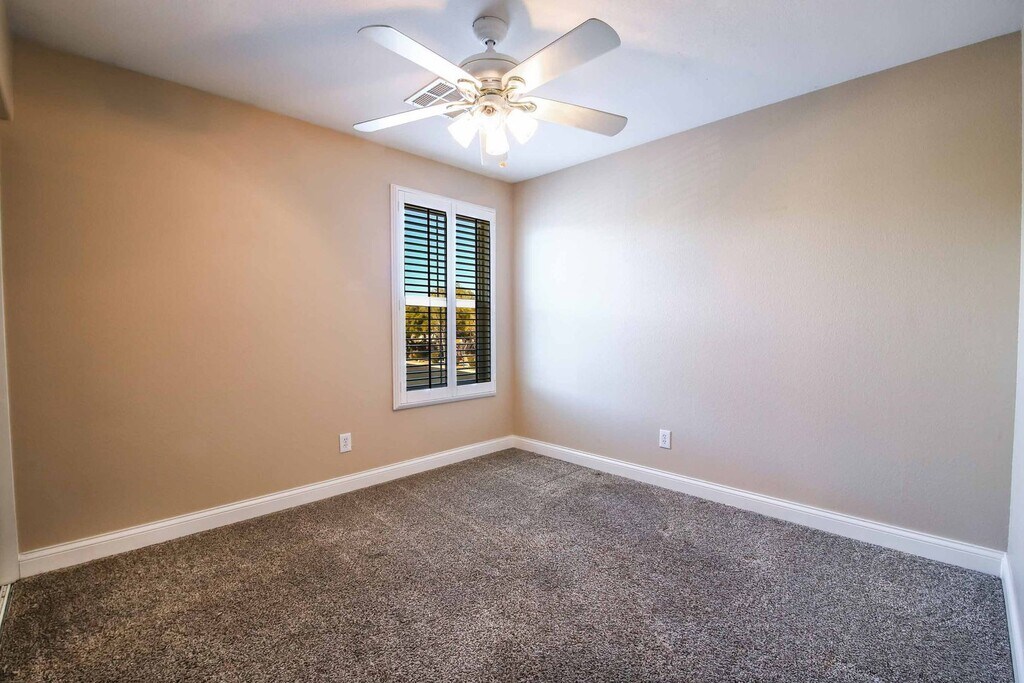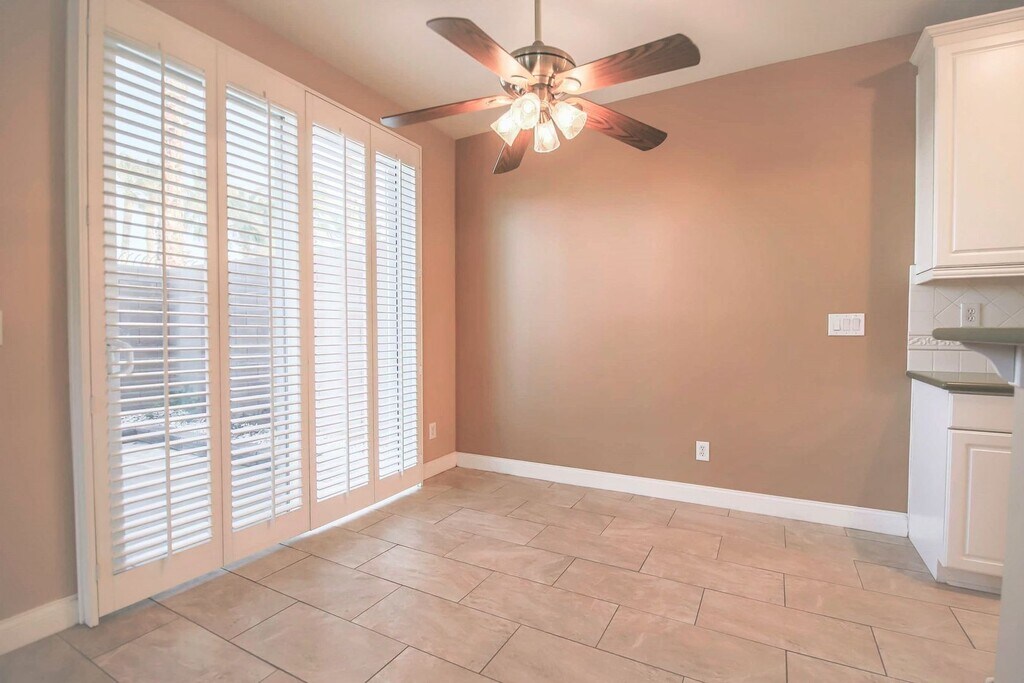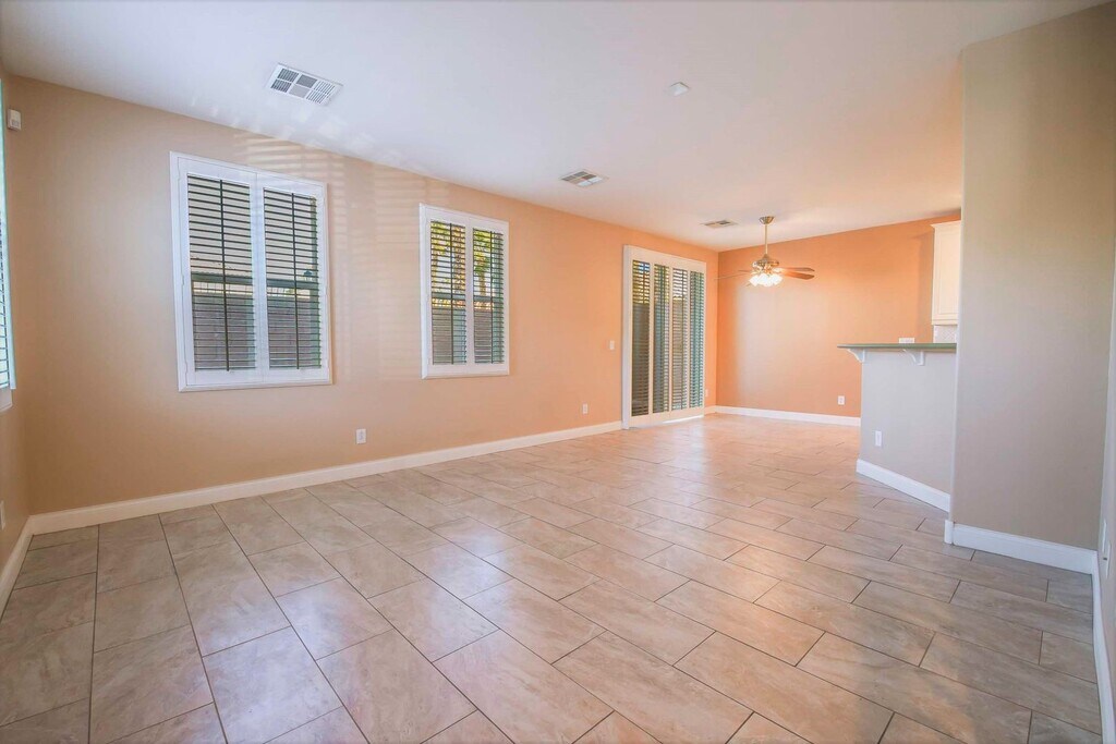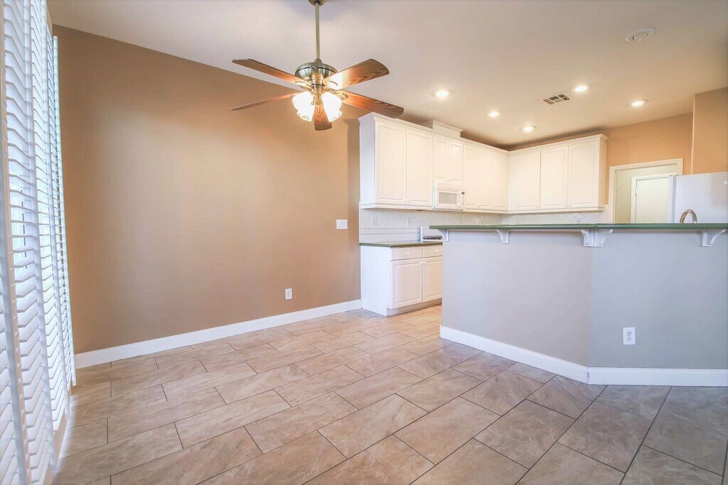 Upgraded condo in Northwest gated community. Open floor plan, shutters throughout, tile flooring downstairs and wood flooring on stairs. Kitchen features upgraded 42" upper cabinets, solid surface countertops, breakfast bar and dining area. Separate laundry area includes washer and dryer. Bedrooms are upstairs. Primary bedroom features ceiling fan and walk in closet. Mirrored wardrobe doors in secondary bedrooms. Patio area with artificial turf. 2-car garage. Community pool.