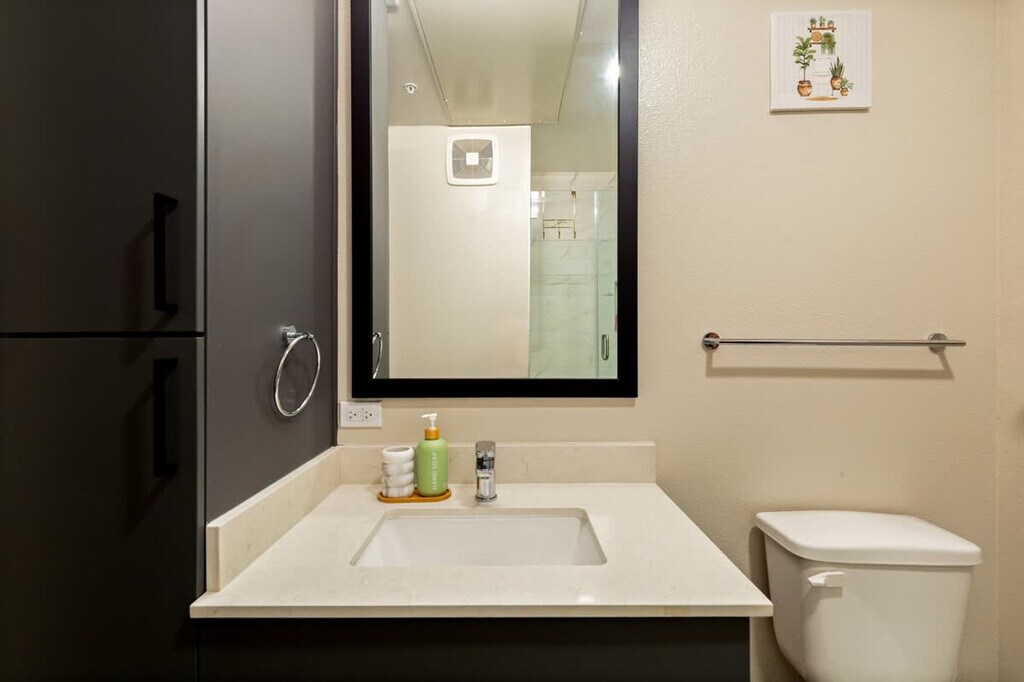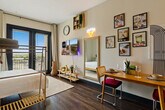 Feel at home in this sleek studio apartment, The Urban Chic Retreat, featuring a balcony overlooking the pool. This apartment features a minimalist design with upscale comfort, a washer, air conditioning, Wi-Fi, a smart TV, a full kitchen, and a cozy bedroom. The balcony is perfect for morning coffee or relaxing evenings. Early check-in or late check-out is available for $30 each, based on availability. No pets are allowed, and a $500 fine will be applied for bringing pets into the apartment. Smoking or vaping is prohibited, and a $500 fine will be charged for smoking or vaping inside the apartment. Excessive cleaning will result in a $200 cleaning fee. Please do not visit the office for assistance. Failing to follow this rule may result in a $50 fine. Please respect quiet hours from 10 PM to 8 AM. A $250 replacement fee will be charged for lost or damaged key fobs. Hosting parties or events is strictly prohibited and will incur a $500 fine. Engaging in illegal activities on the premises will result in immediate eviction and a $1,000 fine. Any damage caused to the apartment or its contents will be charged at replacement cost, plus a $300 damage fee. Hanging items from balconies is prohibited. Please limit noise and keep the TV and music volume at a reasonable level to avoid disturbing others. Please dispose of trash in designated bins. The use of shared amenities after hours is prohibited. Please do not turn off or adjust the Wi-Fi settings at any time without prior consent, as this is essential for maintaining the property’s functionality. Tampering with, covering, or disabling the camera is strictly prohibited and will result in a $300 fine. The pool is closed all day every Monday for cleaning. [SI]