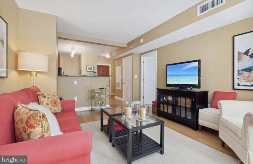 Light Beautiful 1 bed/1 bath in coveted Penn Quarter with large secure garage parking! This condo gleams with bamboo floors, updated kitchen with granite countertops, stainless steel appliances, chic bathroom, gas stove, double pane windows, washer/dryer in unit and a ton of closet space! The Artisan Condominium features a luxury, pet friendly building with 24hr concierge, rooftop terrace, gym and party room. Steps away from galleries, theatres, Capital One Arena, shops, museums, parks, monuments, all Metro lines, and Union Station + a myriad of shopping and restaurant venues! Rent includes parking space, water and trash. Pets( Dogs Cats) are allowed