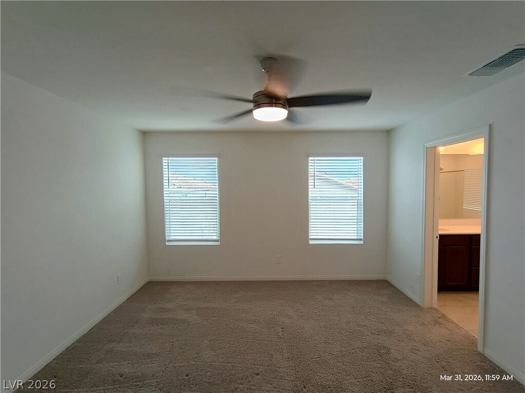 2 story house with 3 bedroom | 2.5 baths | 2 car garage in gated community near Cimmaron & Blue Diamond. Open floor plan downstairs. All bedrooms upstairs. Laminated flooring throughout the house excepting bedrooms (carpet)and bathrooms ( laminated wood). Appliances included. Minimal backyard maintenance required. Tenant pays $45.18 monthly for sewer and trash which is included in the total rent shown.
