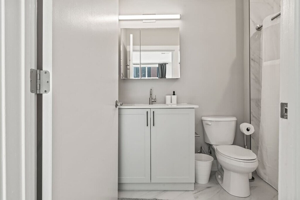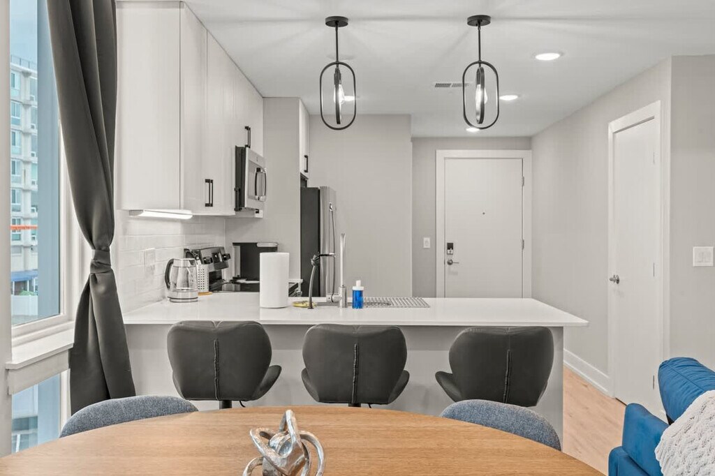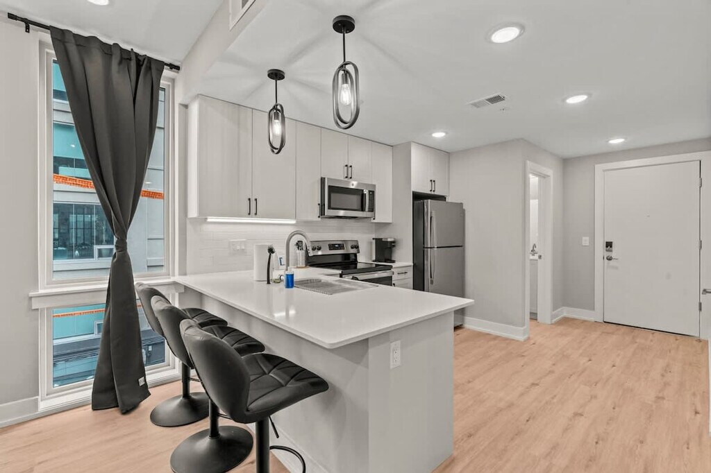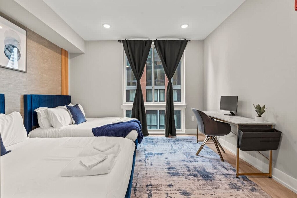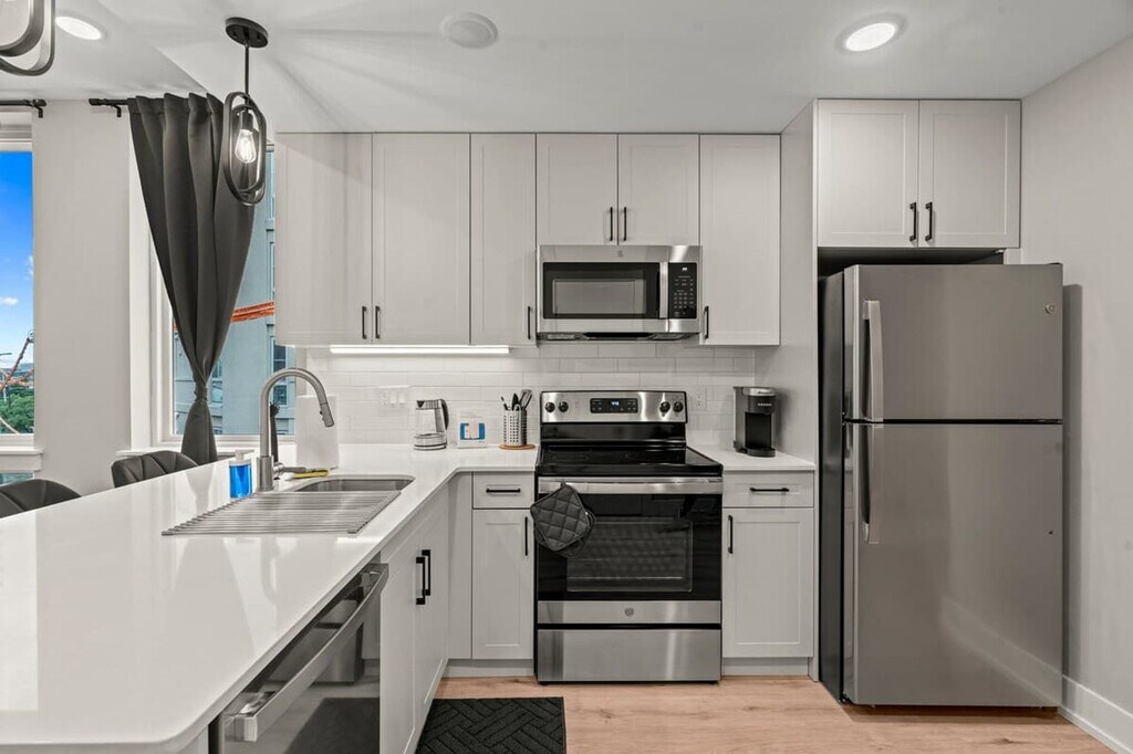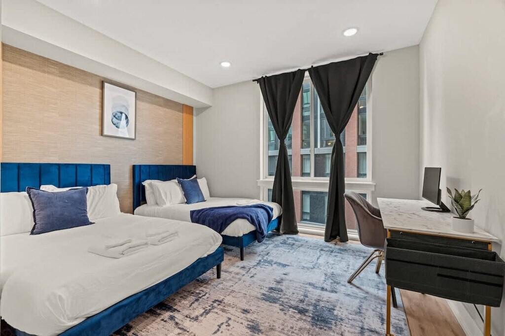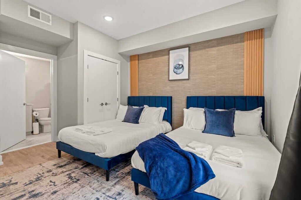 Welcome to your home away from home in the vibrant heart of Philadelphia! This cozy urban retreat offers the perfect blend of comfort, convenience, and modern amenities. Ideal for both business travelers and vacationers, this charming 1-bedroom apartment promises a memorable stay. This inviting apartment is thoughtfully designed to cater to all your needs for a carefree and enjoyable stay. Relax in the serene ambiance of the bedroom, furnished with two full-sized beds, high-quality linens, cozy pillows, and ample closet space. The living room features a stylish and comfortable sofa bed, seamlessly integrated into the space, perfect for accommodating extra guests. The kitchen is outfitted with state-of-the-art stainless steel appliances, including a refrigerator, oven, stove, microwave, and dishwasher, making cooking and cleanup a breeze. The bathrooms feature a contemporary design with clean lines and high-quality finishes, creating a serene and inviting atmosphere. Pets are allowed depending on size, with a cleaning fee of $25 per night for 1-4 nights, $200 for 5-29 nights, and $300 for 30+ nights. Please inform us beforehand about bringing a pet to avoid cancellation. Experience the best of Philadelphia from this stylish urban apartment. Whether you’re visiting for business or leisure, you'll be in the heart of the city, close to all the attractions and conveniences. Surveillance cameras are in the hallways for security and a Minut device is in the unit for noise level monitoring. No shoes are allowed in the house and guests are requested to do their dishes before leaving. Smoking is not allowed indoors, and a $500 fine will be imposed if there is evidence of smoking indoors. Please ensure the shower curtain is kept inside the shower basin while showering to prevent water from spilling onto the floor. Equipped with a comfortable desk and chair, the apartment ensures you can work for extended periods without discomfort. [SI]