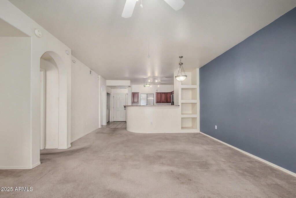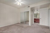 Charming 2-bedroom unit in the gated Devonshire Condominiums! 12 miles from ASU! You're welcomed by a serene living room with high ceilings,a two-tone palette,and soft carpeting for added comfort. The kitchen comes with abundant wood cabinetry,contemporary track lighting,built-in appliances,and a two-tier peninsula with a breakfast bar. The main bedroom features a walk-in closet with mirrored doors that enhance the sense of space & a private bathroom with dual sinks for an efficient daily routine. Venture out onto the lovely balcony,which includes a storage room and offers breathtaking mountain views. The Community boasts a clubhouse,a gym,pool/spa,media room,& well-maintained common areas. Don't miss out on this fantastic opportunity!
