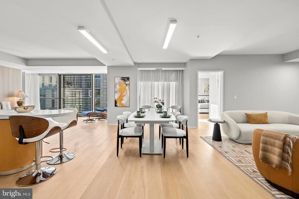 Sophisticated Urban Living at The Residences at CityCenter DC Professionally reimagined and upgraded for contemporary living, this exceptional 1,807 sq. ft. two-bedroom residence overlooks the serene courtyard of one of downtown Washington, DC’s most prestigious addresses — The Residences at CityCenter. Expansive floor-to-ceiling windows bathe every room — including both bedrooms, the living room, and the family room — in natural sunlight, while framing picturesque views of lush greenery below. Among the largest two-bedroom floor plans in the building, this home offers a rare combination of space, design, and value — all competitively priced in DC’s most coveted condominium community. Distinctive Features & Layout Two generously sized bedrooms, each with walk-in closets and en-suite full baths A private den/home office with its own separate entrance and half bath — perfect for quiet, undisturbed remote work An additional guest half bath, thoughtfully designed to maintain privacy for bedroom areas Separate family and living rooms, both overlooking the charming courtyard lined with DC’s finest boutiques and restaurants High-end Italian custom cabinetry throughout, providing elegant and ample storage Created by combining two one-bedroom residences, this home offers unmatched “two-for-one†advantages — including: Two refrigerators Two dishwashers Two pantries Two half baths This configuration ensures maximum comfort, convenience, and privacy — a feature unique to this residence within the entire building. To complete the package, the apartment includes two premium parking spaces (one directly adjacent to the level 4 elevator and another nearby) and two storage units. Move-In Ready Luxury Available fully furnished (optional), the home features curated décor and furnishings from BoConcept, Calligaris, and CB2, along with LED lighting upgrades and custom wall panels. Simply bring your suitcase — the apartment is ready for immediate occupancy, down to the wall art. Amenities & Lifestyle Residents enjoy access to an array of luxury amenities including: 24-hour concierge service Fitness center Conference and meeting rooms Wine bar and event lounge Access to the pool and lounge in the adjacent CityCenter complex Perfectly located in the heart of downtown DC, The Residences at CityCenter offers effortless access to world-class shopping, fine dining, Metro stations, the National Mall, and the White House. The beautifully landscaped courtyard — a vibrant venue for events and gatherings — creates a welcoming urban oasis and a hub for community life. Designed by the internationally acclaimed firm Foster + Partners, The Residences at CityCenter stands as an architectural icon of modern luxury living in Washington, DC. Includes two premium garage parking spaces and two storage units. Available unfurnished at $6,750/month or fully furnished at $7,750/month.