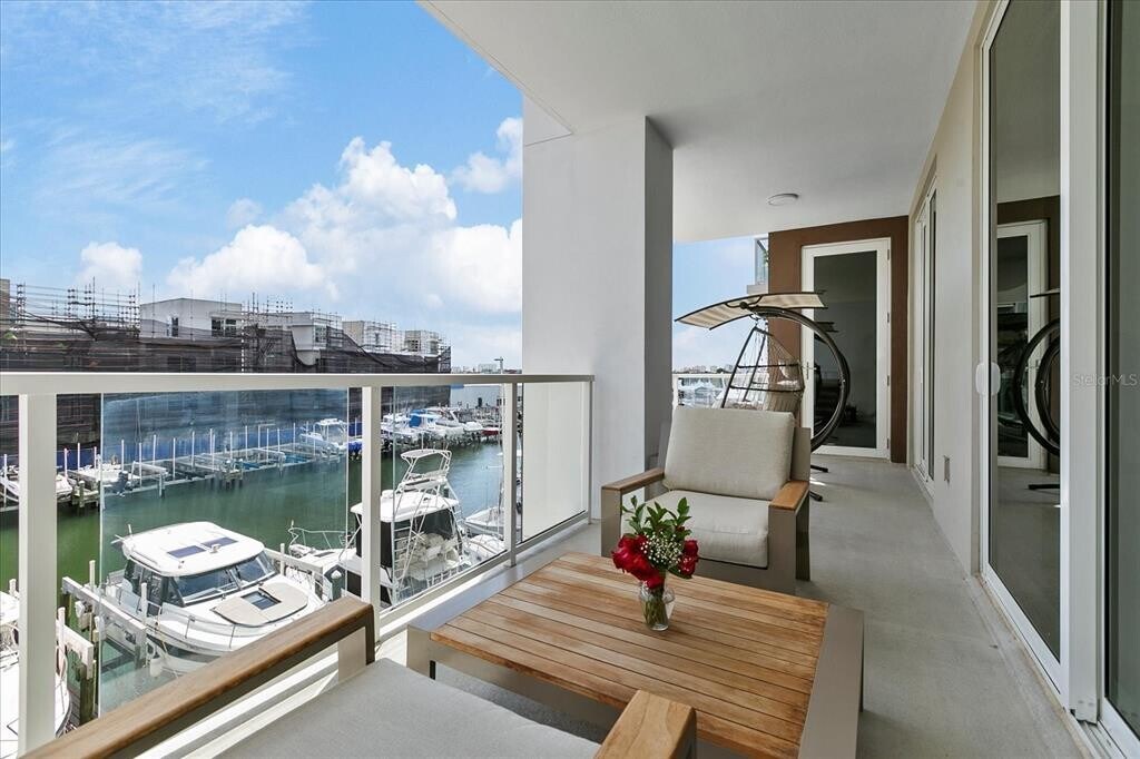 This south,southwest,and west facing residence offers over 180 degrees of sweeping waterfront views,spanning the marina,Intracoastal Waterway,bridges,and Clearwater Beach,with stunning sunsets year round. A 381 square foot wraparound balcony,accessible from all three bedrooms,provides an ideal setting for morning coffee,evening drinks,or entertaining. The open layout includes a separate den or bonus room and a well appointed kitchen with white all wood cabinetry,quartz countertops,a center island with seating,and a breakfast area that flows into the living room. The owner’s suite features a large walk in closet and a spacious bath with a walk in shower and dual shower heads,while two additional bedrooms offer generous walk in closets and share a separate guest bathroom. A dedicated laundry room is conveniently located off the den. Situated in a rare,newer luxury development directly on the Intracoastal Waterway,every residence enjoys water views,and this one truly stands out. The adjacent marina offers 69 boat slips,many with lifts,with residents receiving preferred access to lease slips at market rates. Resort style amenities include a saltwater lap pool with baja shelves,fitness center,sauna and steam rooms,putting green,clubroom with pantry,24/7 concierge,and more,creating an exceptional waterfront lifestyle that must be experienced to be fully appreciated. MLS# TB8458036