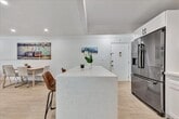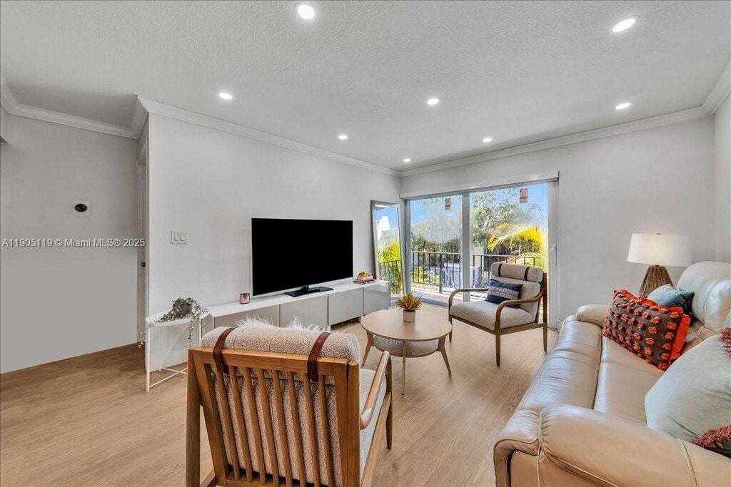 Nestled in a highly sought-after neighborhood, this charming 2-bed, 2-bath corner unit combines comfort and convenience. Located minutes from Baptist Hospital, Dadeland Mall, top-rated schools, Life Time Gym, and popular dining, it offers easy access to everything you need. The home is filled with natural light and features elegant laminate wood floors throughout. The remodeled kitchen includes an island, stainless steel appliances, and ample cabinet space. Additional highlights include electric blackout blinds, impact windows, spacious closets, and an in-unit washer and dryer. Step out onto the expansive 16-ft balcony overlooking the pool and lush greenery—perfect for relaxing or entertaining. Two parking spaces included.