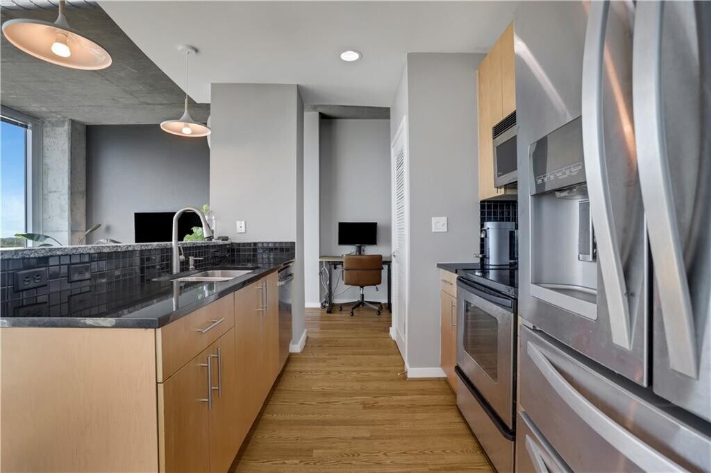 Available Now! Spacious 1 bedroom,1 bath condo in the heart of Midtown featuring an open floor plan,high ceilings,and a large walk-in closet with built-in dresser,drawers,and shelving. Enjoy the convenience of in-unit washer and dryer,one parking space,and unbeatable walkability to Piedmont Park and the Midtown Mile. Building amenities include a saltwater rooftop pool,fitness center,bike room,and event/meeting spaces. Your pets are welcome,and the monthly rent is $1,699. Utilities not included.**AVOID RENTAL SCAMS: Rental fraud happens every day; protect yourself! Never wire cash or send gift cards for payments or deposits.