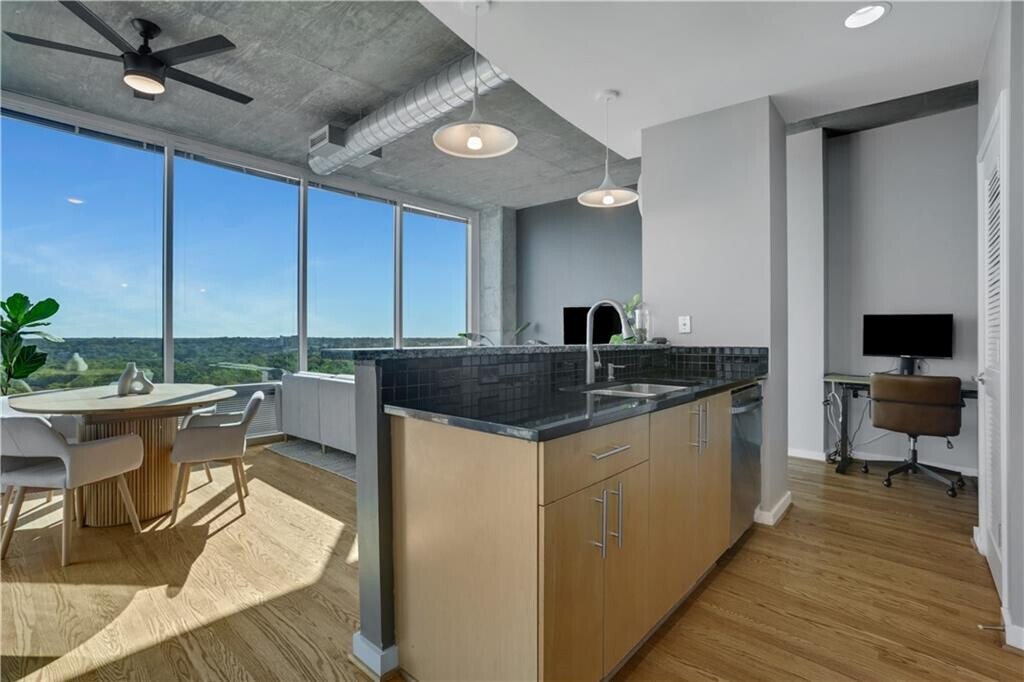 Live in the heart of Midtown at Metropolis in this bright,fully furnished,one-bedroom corner loft! This incredible unit on the 14th floor gives you the best of all worlds with floor to ceiling windows with an amazing view. All the furniture,fixtures,and appliances will come included in the unit as it will come fully furnished for easy move-in. The updated interior has design touches to maximize the layout of the unit - stainless steel appliances,modern light fixtures,granite countertops,hardwood floors throughout the main level and carpet in the bedroom. The owner's suite features a huge walk-in closet and ensuite bathroom with tub/shower combo. Amenities includes the gym,pool,grilling deck,24 hour concierge,and clubhouse! Short walk to Piedmont Park,Marta,restaurants,shopping,grocery stores,the Fox Theatre and the Woodruff Arts Center. Washer/dryer in unit and one parking space included! Available starting January 2026.