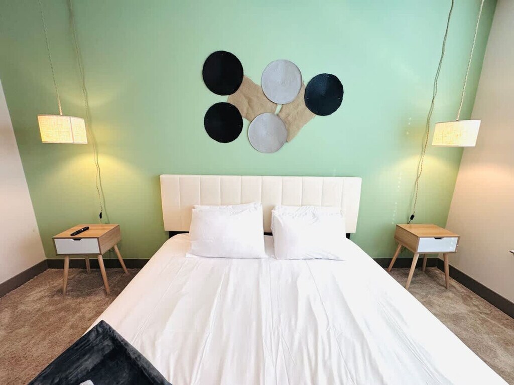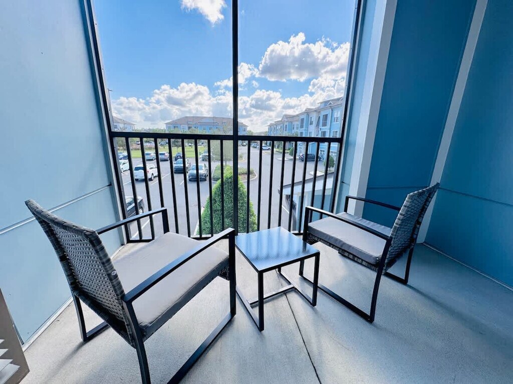 Feel at home in this modern 1-bedroom, 1-bathroom apartment in Winter Garden, FL. Located on the third floor of a building without an elevator, the unit is accessible via two ramps of stairs. This stylish and cozy apartment offers a bright and spacious living area with ceiling fans in both the living room and bedroom, upgraded flooring, and modern tile accents. The living area includes a sofa bed (72” long x 45” wide when open), a flat-screen 50” TV, and a kitchen island with four adjustable stools. The fully equipped kitchen features energy-efficient stainless steel appliances, granite countertops, a wine fridge, refrigerator, stove, microwave, coffee maker, blender, toaster, cookware, and utensils. The spacious bedroom offers a comfortable king-size bed with premium linens, a large walk-in closet, a ceiling fan, and a flat-screen 43” TV. The full bathroom includes a spacious bathtub and provided essentials: toilet paper, shampoo, conditioner, shower gel, hand soap, towels, and hairdryer. Enjoy Florida's fresh air and sunshine on the private balcony. Luggage drop-off is available after 12:30 PM with advance notification. Pets are allowed, but some breed restrictions apply: Pit Bull Terriers/Staffordshire Terriers, Rottweilers, Doberman Pinschers, Chows, Presa Canarios, Akitas, Alaskan Malamutes, and Wolf-Hybrids. Enjoy convenient access to nearby theme parks, shopping, and dining. Quiet hours are between 10:00 PM and 8:00 AM.