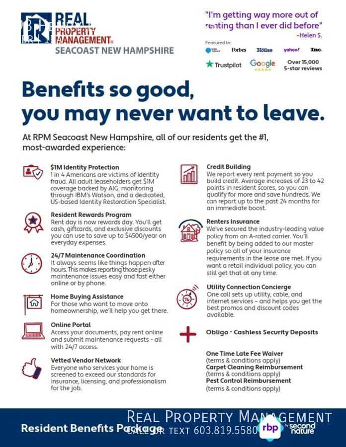 Stylish and cozy 1 Bedroom condominium in Cricket Brook! This unit was recently updated with stainless steel appliances, butcher block countertops, and vinyl plank flooring throughout. Tenants also use the laundry facilities and the inground pool on-site. This unit is conveniently located near Henry Law Park, downtown restaurants, and shops. Type: Condo Neighborhood: Cricket Brook # of Stories- One (1) Story Floor- 1st Floor corner unit Security Deposit: 1 Month's Rent 1 Bedroom/1 Bathroom Square Feet: 500sf 12+ Month Lease Term (Minimum) Professionally Managed HOA: Yes Unfurnished Washer/Dryer: Community Center (On-site) Parking: One (1) Off Street Parking- Parking Lot Utilities (Tenant)- Heat (Electric), Electric, Hot Water, Cable/Internet and Trash Utilities (Landlord)- Snow Removal (HOA); Landscaping (HOA), Water/Sewer (HOA) Dogs and Cats considered: PET POLICY: $195.00 one-time; non-refundable pet fee and $50.00 per month rent increase per pet. Disclaimer: All RPM Seacoast- NH tenants are enrolled in the Resident Benefits Package (RBP) for $35.95/month. This includes renters insurance, credit building to help boost your credit score through timely rent payments, and $1M Identity Protection. Apply Online: All parties over the age of 18 must be leaseholders—no exceptions. There is a $55.00 screening fee per applicant. Applicants must submit income verification and a valid driver's license. A minimum credit score of 650 is required, along with a satisfactory background check. Combined gross monthly income must be at least three (3) times the monthly rent. Rental references for a minimum of 3 years are also required.