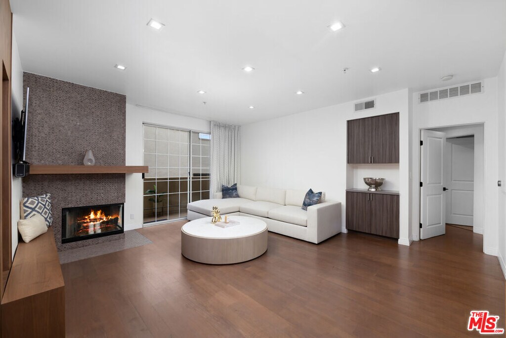 Experience refined living in this elegantly furnished 2-bedroom, 3-bath residence offering 1,464 square feet of meticulously designed space. The open-concept floor plan is graced with high ceilings and elegant hardwood floors that flow seamlessly throughout, creating an atmosphere of timeless sophistication. The custom chef's kitchen features Carrera marble countertops, a breakfast bar, and premium Thermador appliances that flows into the open dining room. The inviting living area centers around a stunning marble fireplace, while twin French doors open to two private terraces, ideal for morning coffee or evening relaxation. The primary suite is a serene retreat with a spa-like bathroom, complete with a built-in vanity, soaking tub, and a spacious walk-in closet. A full in-unit laundry room and generous storage provide added convenience. This full-service luxury building offers a wealth of amenities, including a 24-hour concierge and security, heated pool, fitness center, sauna, meeting room, guest parking, EV charging station and a tranquil courtyard for residents to unwind. Two side-by-side parking spaces in the gated subterranean garage complete this remarkable offering.Perfectly combining elegance, comfort, and modern convenience, this home redefines luxury condo living with walkability to the best restaurants and private clubs West Hollywood and Beverly Hills has to offer. MLS ID 25617437