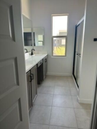 NEWER HOME FOR RENT IN EASTMARK! 2-story, 4-bedroom + loft, 2.5 bathrooms, 2-car garage. Located in the highly sought-after Eastmark community with access to all amenities including 96-acre park with lake, splash pad, skate park, and playgrounds. Restaurant, coffee shop & small store on site. Top-rated schools. Safe area. House only 2 years old. Kitchen with granite countertops, grey wood-toned shaker cabinets, black fixtures, gas stove, and high-end fridge. Upstairs laundry with W/D included. Bathrooms with black fixtures and square sinks with master en suite. All bedrooms upstairs with split floorplan. Flooring is tile in wet areas and carpet. 2" blinds and ceiling fans throughout. Home includes whole home air purifier and water softener. Private backyard and no homes behind. Walk to parks and Eastmark amenities. Apply now! Won't last long! The tenant responsible for utilities (water/sewer/trash), electricity, gas, phone, and cable. Pets negotiable. No smoking or vaping. First, last, and security required. Landscaping, salt for water softener, and air filters included. HOA dues covered by landlord. 12-month minimum lease. Must have verifiable income and good credit. Renter's insurance required.