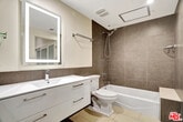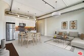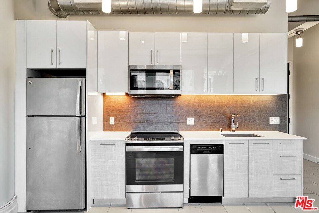 Located in DTLA's Historic Theatre District, this renovated 2-bedroom, 1-bath condominium offers approx. 1,240 sq ft of open living space with 11-ft ceilings and porcelain tile flooring. The kitchen includes quartz countertops, stainless steel appliances, and ample cabinet storage. Additional features include a Nest thermostat, remote-controlled blackout blinds, and a custom primary closet. Building amenities include a rooftop pool and spa, cabanas, fitness center, and in-unit laundry. Close to the United Theater on Broadway, Apple Store, Whole Foods, public transit, dining and entertainment throughout DTLA. MLS# 25623983