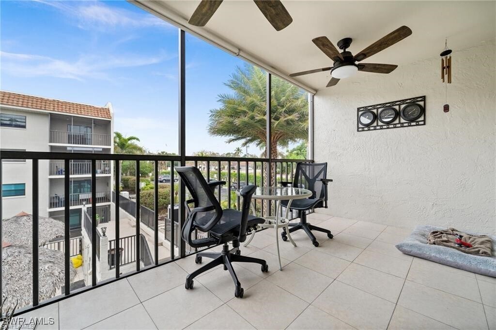 Welcome to Spanish Harbor,a sought-after waterfront community...This beautifully designed 2-bedroom,2-bath end-unit condo boasts 1,141 square feet,making it an exceptional retreat for both full-time residents and seasonal visitors. As an end unit,this condo enjoys the benefits of extra natural light,with additional windows that enhance the open and airy feel. The split-bedroom floor plan ensures privacy,while tile flooring flows seamlessly throughout,complemented by rich wood floors in the bedrooms. The screened balcony offers serene views of the community pool,making it the perfect spot to unwind...This condo is move-in ready,featuring impact windows and sliders. Additional highlights include in-residence laundry,a dedicated parking space,and ample guest parking...For water lovers,boating enthusiasts will appreciate Gulf access,with boat slips available on a first-come,first-serve basis. The community also features a BBQ and picnic area,providing a great space for socializing and enjoying the outdoors. This condo offers quick access to shopping,dining,entertainment,I-75,and Barefoot Beach,placing everything you need within easy reach. Whether you're searching for a full-time residence,investment opportunity,or seasonal getaway,this Spanish Harbor end-unit condo is a must-see.