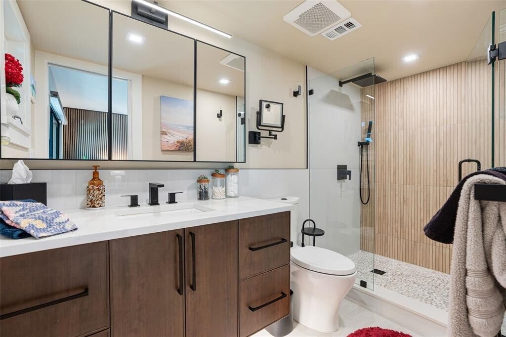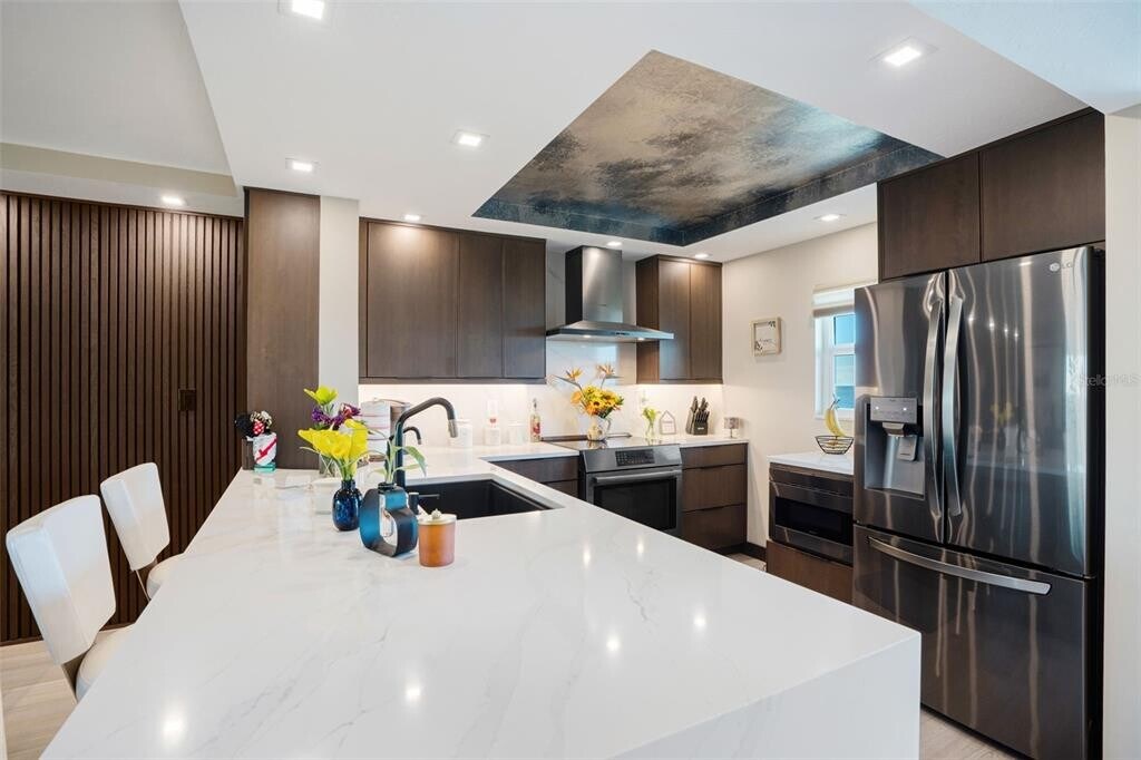 Also for SALE! Welcome to 9397 Midnight Pass Rd #905 Sarasota,FL 34242 at The Pointe on Siesta Key,a fully renovated 1,348 SF,2-bedroom,2-bathroom luxury condo offering breathtaking Little Sarasota Bay and Intracoastal waterway views from the 9th floor. This stunning residence underwent a complete custom renovation in 2023,setting it apart from every other unit in the building. The open-concept kitchen features quartz countertops,vaulted ceilings with a bold rock-and-metal aesthetic,and a one-of-a-kind handcrafted glass-art backsplash,with bar seating connecting seamlessly to the dining and living areas,a custom layout rarely found at The Pointe. Luxury vinyl plank flooring flows throughout every room including the lanai,while wood acoustical paneling enriches both the living space and primary suite. Additional upgrades include HD-mounted televisions,a 2023 AC system,and a new LG washer and dryer,making this unit nearly turnkey and move-in ready. Step onto your private lanai,protected by hurricane-grade sliders,and take in tranquil water views of Little Sarasota Bay,where dolphins,manatees,and sailboats pass through calm Intracoastal waters daily. As a resident of The Pointe's gated five-acre community,enjoy resort-style amenities including boat docks,kayak and canoe access,a heated pool and spa,sauna,tennis and pickleball courts,BBQ gazebos,a clubhouse,and a fitness center with panoramic Intracoastal views. Located just minutes from Turtle Beach,Siesta Key Village,waterfront dining,local marinas,and coastal cafés,this property is ideal whether you're seeking a luxury Siesta Key waterfront residence,a vacation condo,or a Sarasota investment property. Schedule your private showing today. MLS# A4690579