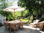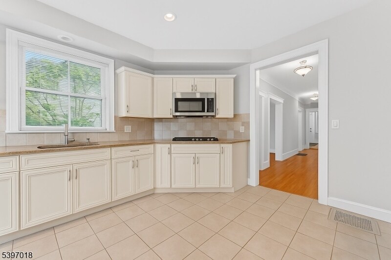 Luxurious and spacious beautifully renovated 3 level townhouse FEELS LIKE A SINGLE FAMILY HOME with private yard and a private patio adjoining the home. The private porch welcomes you into this home which features high ceilings, hardwood floors, a state of the art kitchen with granite countertops, top of the line stainless steel appliances and Designer baths. This home offers a private lemonade front porch, a large Living Room and Dining Room, oversize Kitchen with a separate Breakfast Area, and a spacious Den with French doors. The third floor offers a private Primary Suite with possible office space and a show stopping Primary Bathroom. Additional bedrooms and baths provide great space for guests. Laundry hook ups in unit. More updates include 2 separate heating and A/C systems and mostly newer windows. 1 car garage with auto opener and 1 parking space is included. All of this close to the Midtown Direct train and NYC bus! NO PETS, NO SMOKING. 1 year or 18month lease.