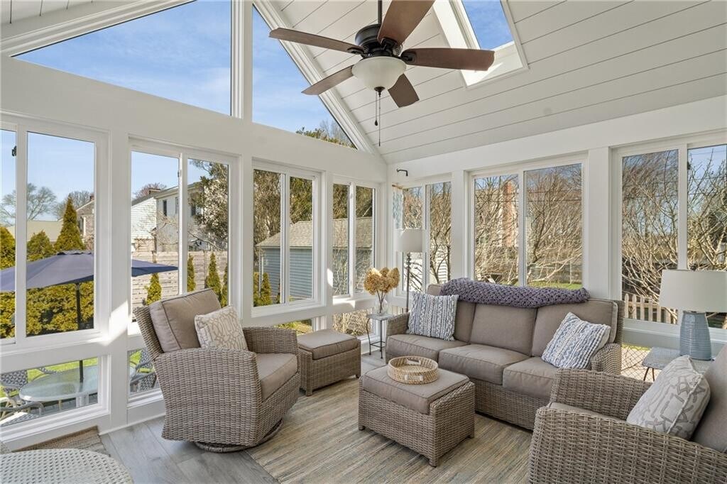 AVAILABLE JULY 1-31,2026. Charming Cape located on desirable Ruggles Avenue that has been newly updated with central A/C and a cozy sun porch that leads to the quaint backyard with grill and outdoor shower. There is a comfortable living room that leads to the open dining area and kitchen. Two bedrooms (one queen-size bed and one with twin beds) share a full bath on the first floor. The second floor has been renovated into a primary suite with built-in drawers,hardwoods,A/C,and a luxurious spa/bath with his/her sinks and walk-in closet. One car garage for storage only and plenty of off-street parking. Close proximity to Gooseberry Beach,Ocean Drive,as well as a neighborhood park and playground,tennis courts and Bellevue Avenue. MLS ID 1403354