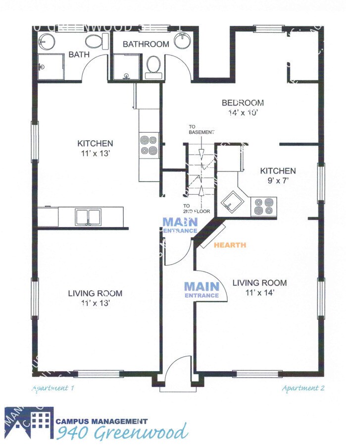 Duplex in huge house just three blocks south of Law, Business and Education Schools. Apartment #1 is a large six unit with several study/bonus rooms. Unit two is a one bedroom apartment. The ideal situation is for a single well organized group to take both apartments. Partially furnished.