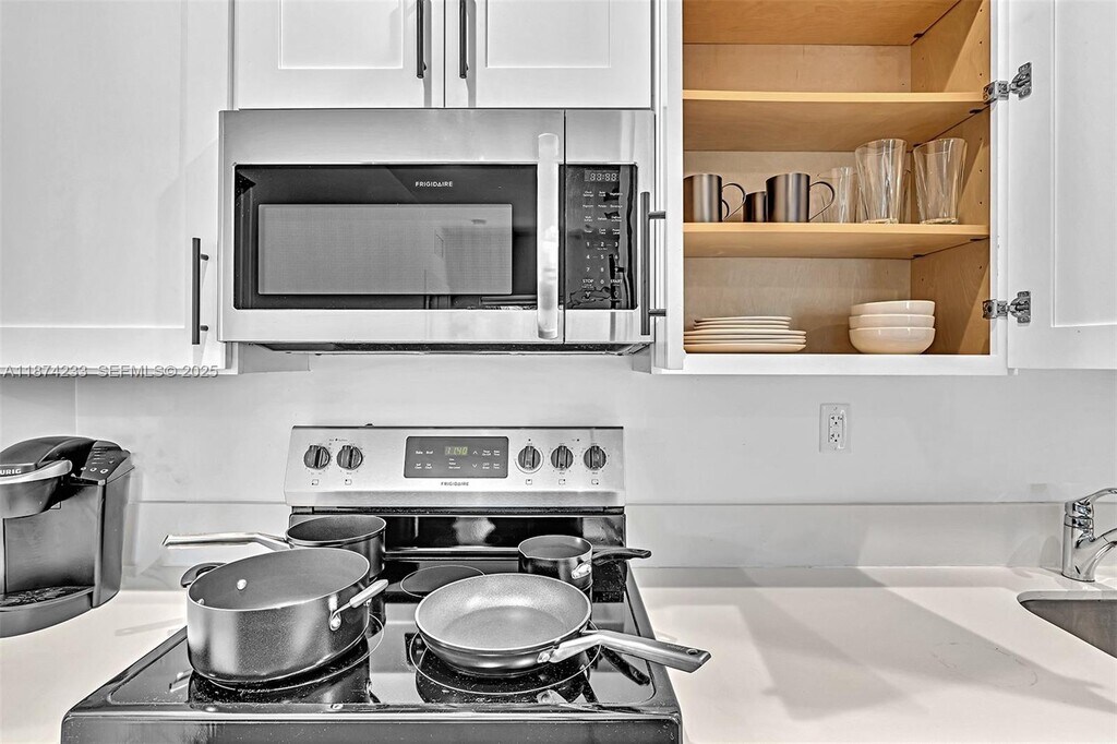 Renovated 2 Bed/2 Bath, located in the heart of South Beach. Unit has high ceilings, central AC, and 12-foot sliding impact windows with window dressings in all rooms. Very spacious with lots of natural light, the bedroom has blackout shades and a walk-in closet. Porcelain tiles throughout & Carrara bathroom with a full wall mirror. The kitchen is finished with white quartz counter-tops, white soft-close cabinetry, and is furnished with top-of-the-line Frigidaire stainless-steel appliances (refrigerator, dishwasher, electric range, and microwave). Finishes are modern, clean &sleek. Contact the owner to show