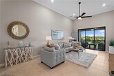 This exceptionally well-kept two bedroom plus den,two full bathroom second floor end unit garden home is NOW AVAILABLE for short or long term rental. Located in one of Naples' most highly sought after resort style communities,Esplanade Golf and Country Club,this like new condo is tucked away on a private cul-de-sac and boasts panoramic golf course and lake views,fabulous sunrises from the Southeast facing lanai,a detached one car garage with Epoxy floors,14 foot vaulted ceilings and a new home feel you won't want to leave! Uniquely featuring an extra window in the den,this condo gives the feel of single family living,offering ample space,a split floor plan ideal for family or guests,large Primary Bedroom with King bed,two walk-in closets and large Primary Bath featuring dual sinks and finished shower. Guest bedroom features a Queen bed,closet and full size hall bathroom. Pocket doors to close off for privacy if needed. Large open concept living area with eat in kitchen finished with granite countertops and island bar for morning coffee,a quick meal or entertaining. Large open den with pull out couch allows for additional room for family and guests. Laundry room with washer/dryer and ample storage space. There is not a detail spared in this spectacular home! Esplanade Golf & Country Club is an amenity-rich community with a modern clubhouse offering a resort style pool with private cabanas and Bahama Bar for dining and drinks by the pool,state of the art fitness/wellness center,golf course *with limited availability to tenants,pickleball,tennis,bocce,4+ miles of nature walking trails,dog park,cafe,wine room,Culinary Center,full service restaurant and full service salon/spa. Just outside the gates you are just a short drive to shopping,dining and Southwest Florida's world class beaches. Do not miss this opportunity to partake in the laid back living that the Esplanade lifestyle has to offer - book your stay today!